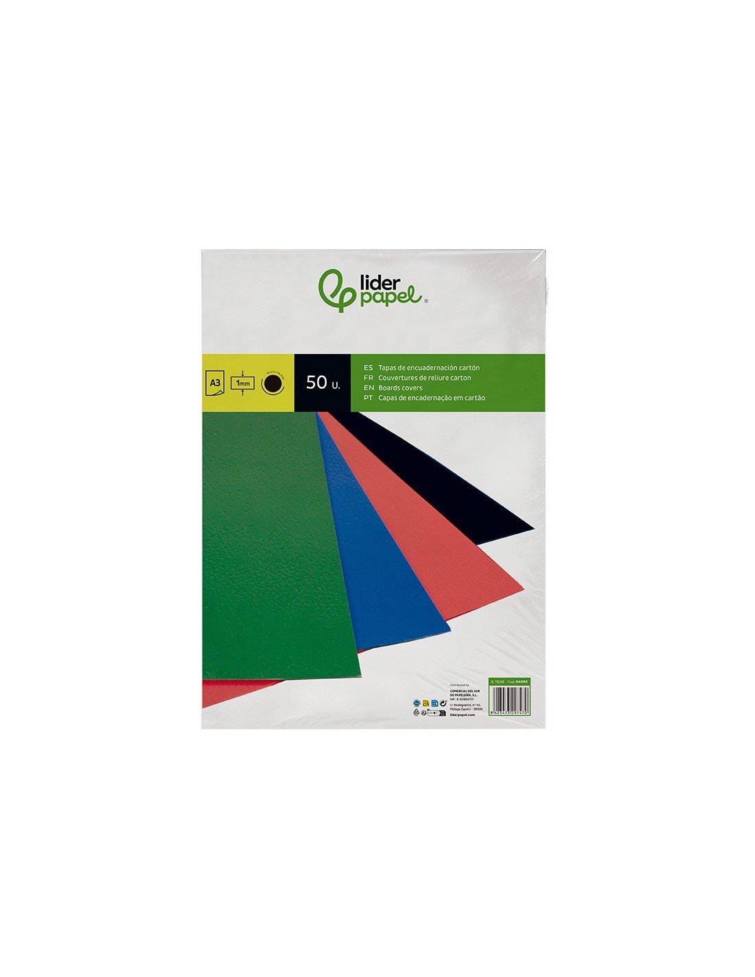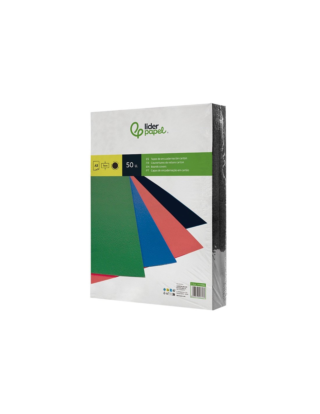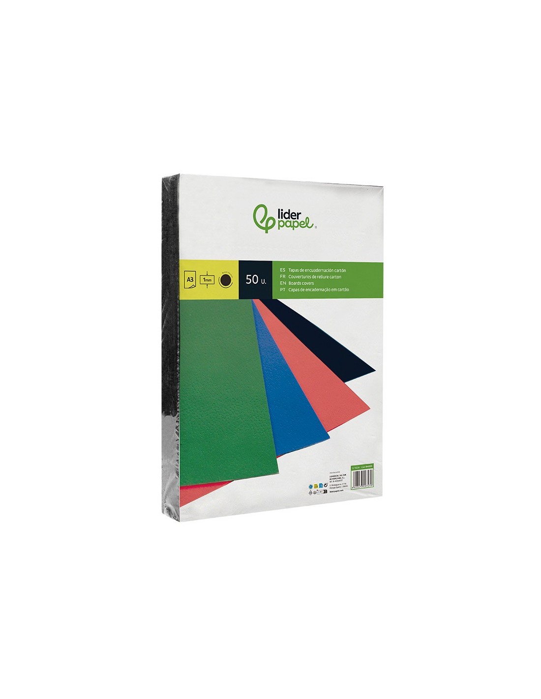 Tapa de encuadernación de cartón de 800 g/m² de 1 mm de grosor. Válida para espiral, canutillo, anillas y otros. El pack de 50 unidades.