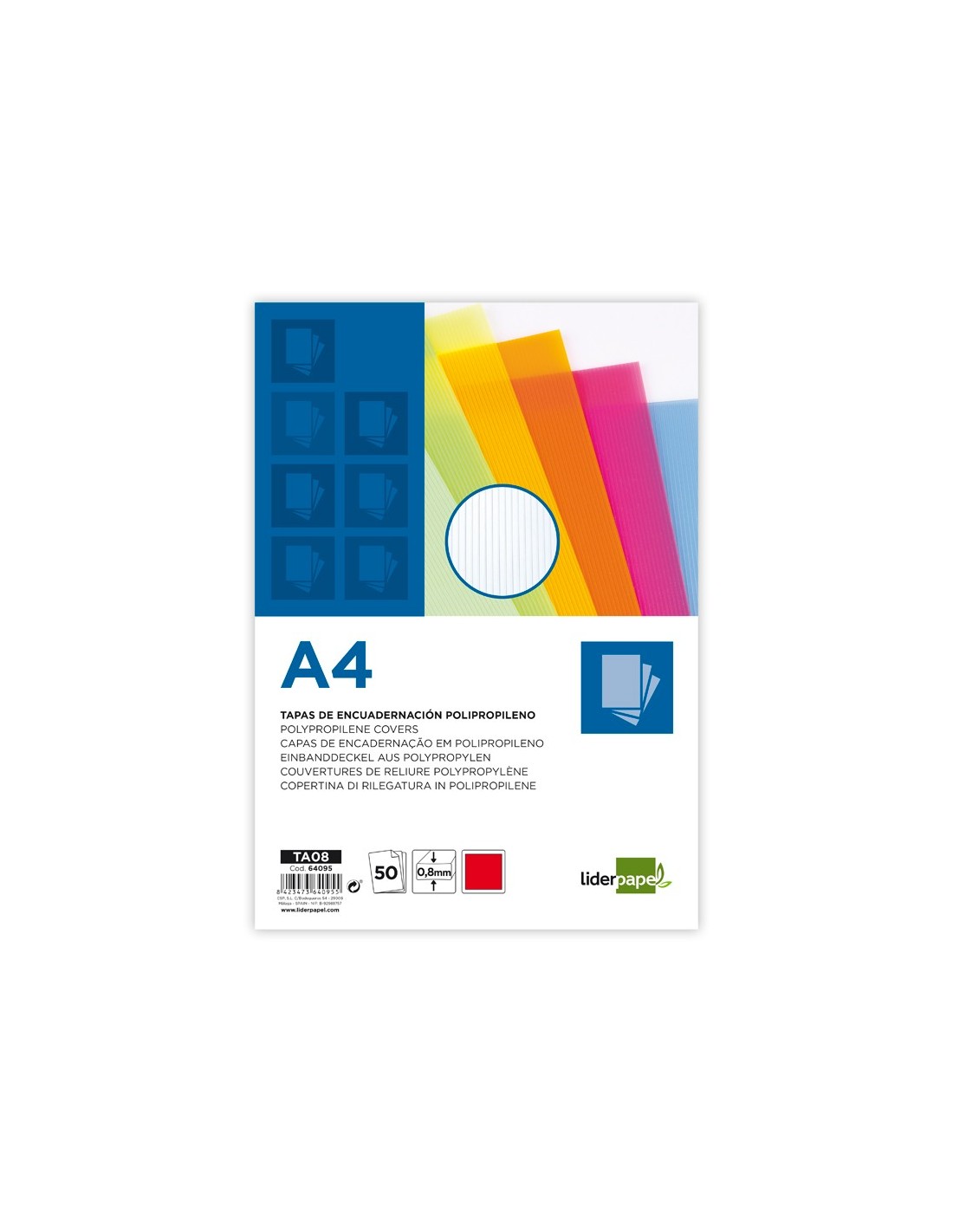 Hoja de polipropileno ondulado. Tapa para dossier y encuadernación. 0,8 mm de grosor. 800 micras. Formato DIN A4. El pack de 50 unidades.