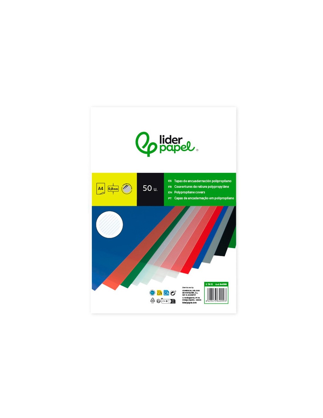 Hoja de polipropileno ondulado. Tapa para dossier y encuadernación. 0,8 mm de grosor. 800 micras. Formato DIN A4. El pack de 50 unidades.