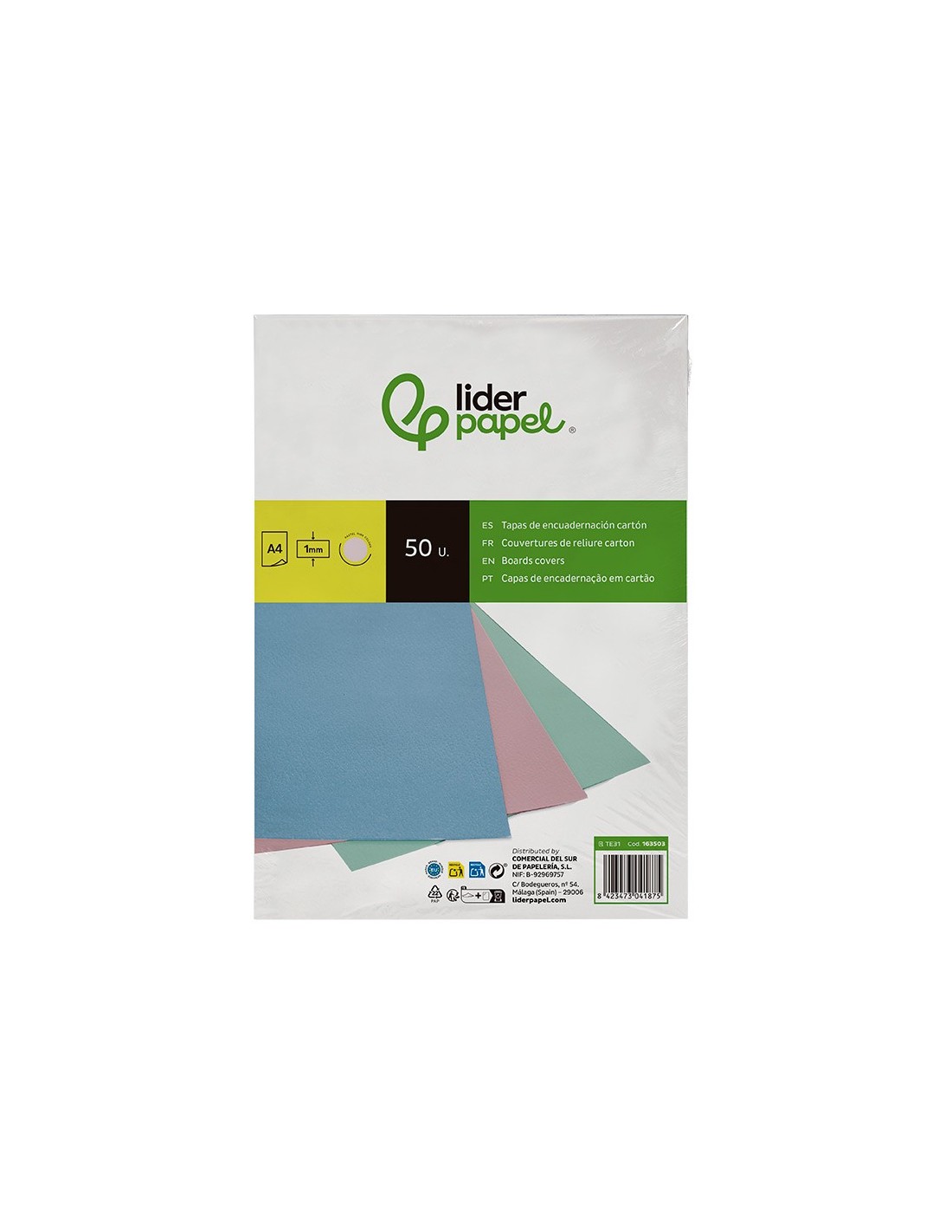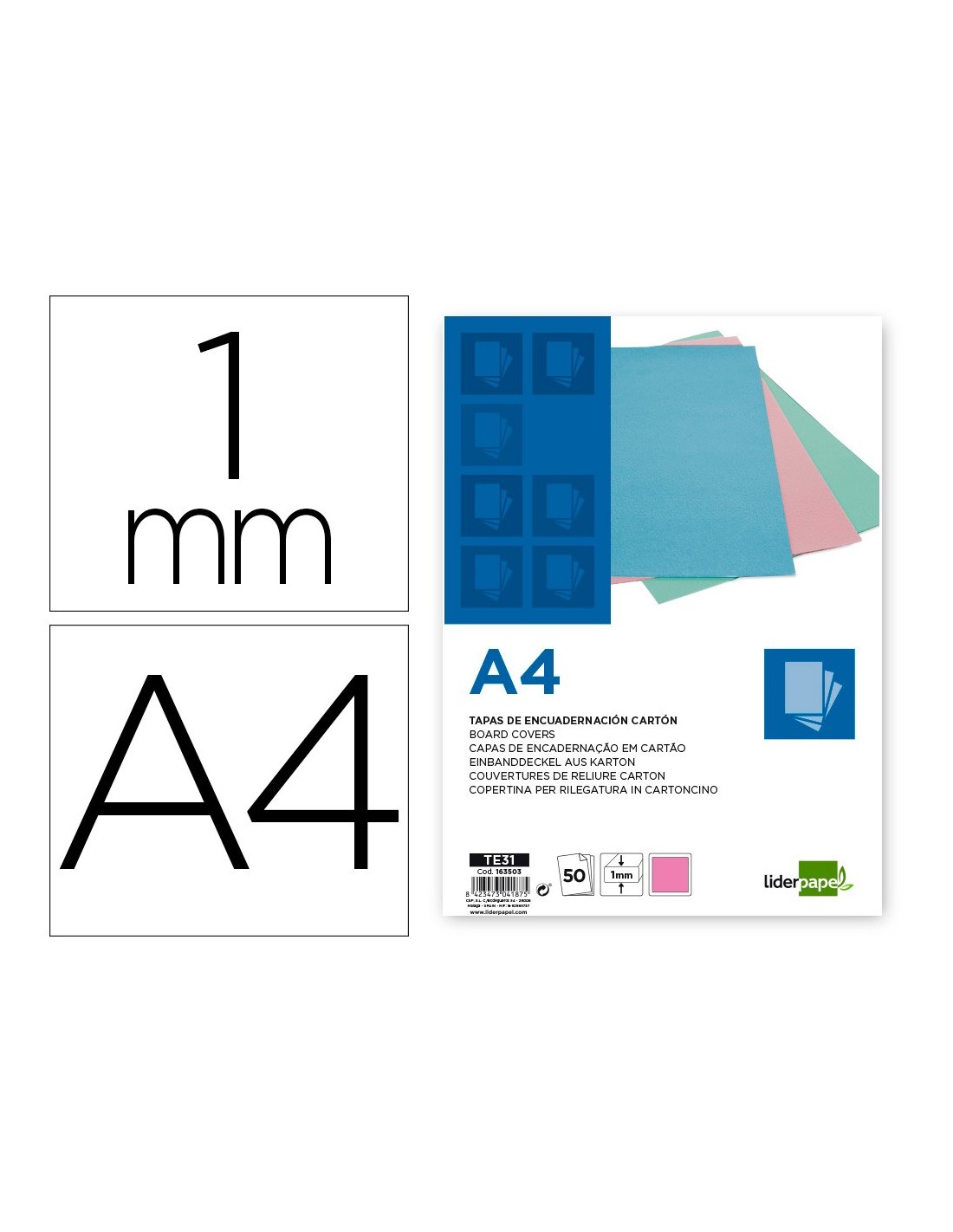 Tapa de encuadernación de cartón de 800 g/m² de 1 mm de grosor. Válida para espiral, canutillo, anillas y otros. El pack de 50 unidades.