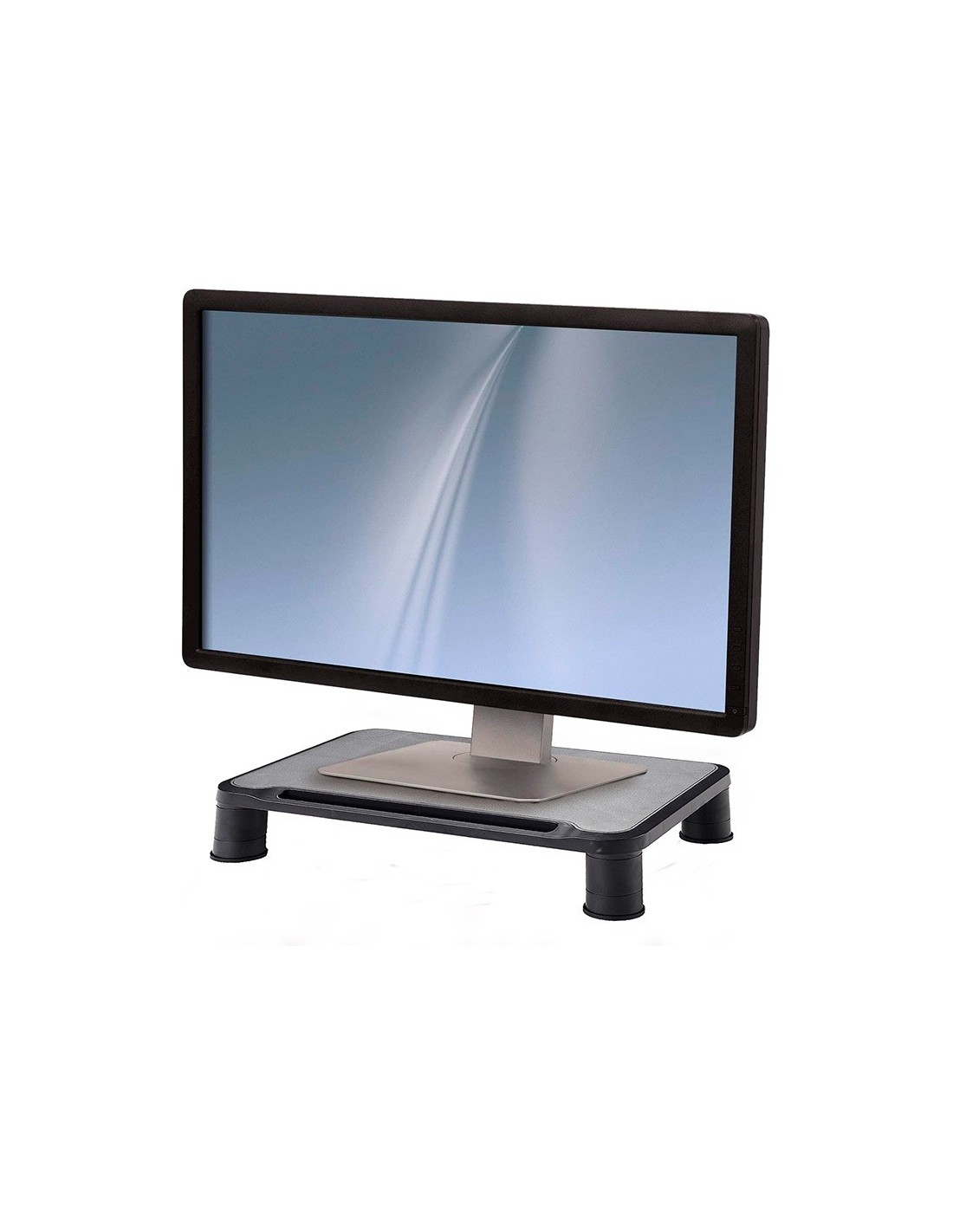 Soporte para monitor ajustable en altura. Se puede ajustar a 3 alturas: 62 / 82 / 112 mm. Color negro.