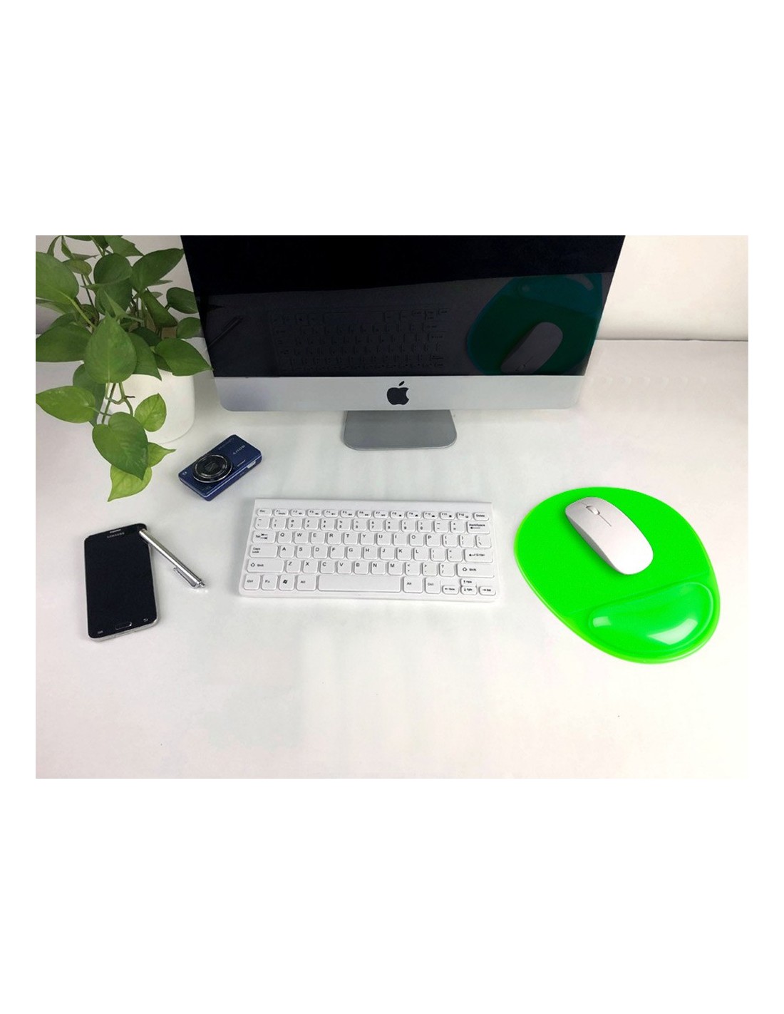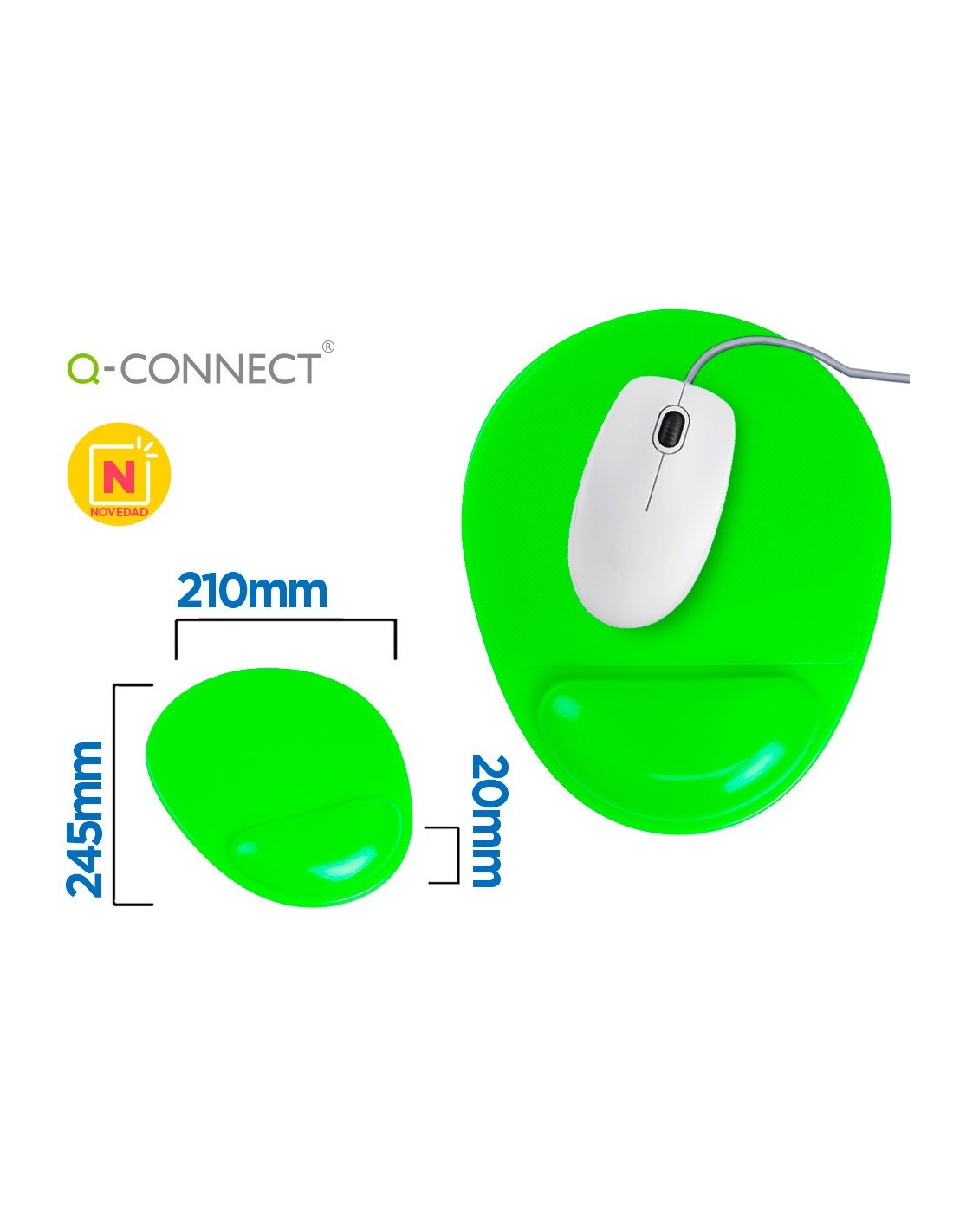 Alfombrilla de ratón de PVC con reposamuñecas de gel. Alfombrilla con superficie especialmente diseñada para mejorar el reconocimiento del movimiento del ratón óptico. Diseño ergonómico y base antideslizante. Colores vivos.