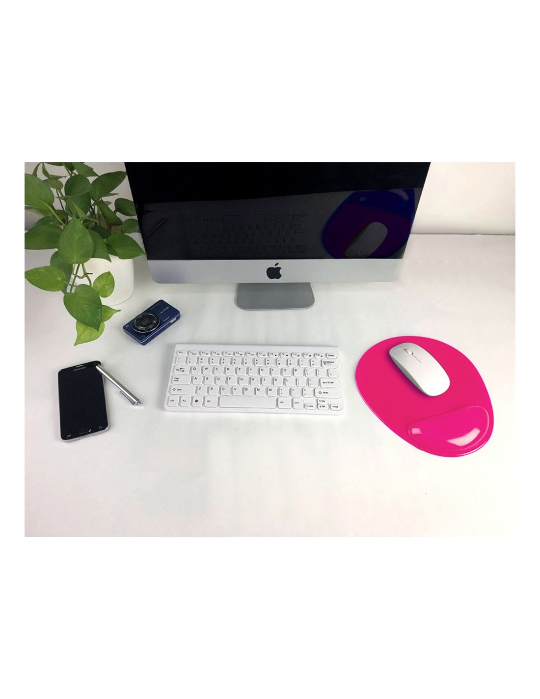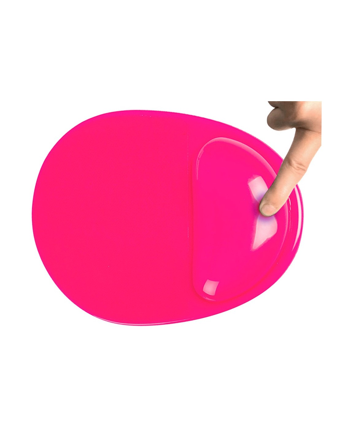 Alfombrilla de ratón de PVC con reposamuñecas de gel. Alfombrilla con superficie especialmente diseñada para mejorar el reconocimiento del movimiento del ratón óptico. Diseño ergonómico y base antideslizante. Colores vivos.