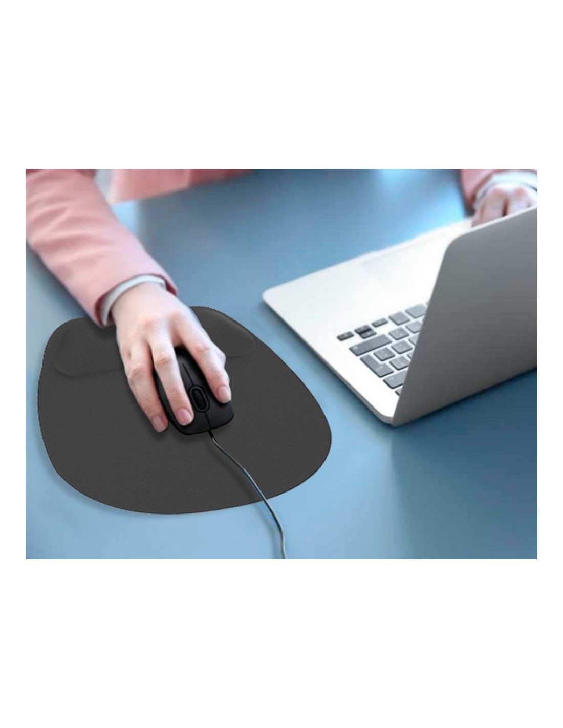 Alfombrilla recubierta de tela suave con reposamuñecas fabricado en gel. Ofrece máxima comodidad para mantener la muñeca en una postura adecuada sin presión. Ideal para uso intenso en oficina. Base antideslizante. Tela fácil de limpiar.