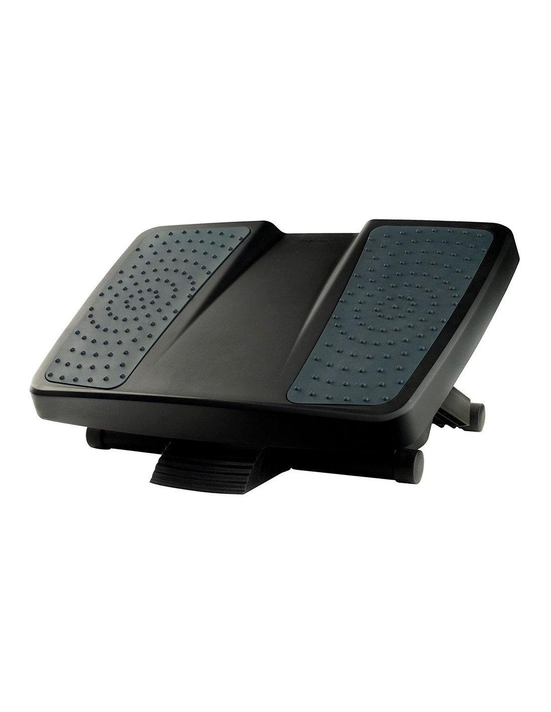 Reposapiés ergonómico de altura ajustable con efecto masaje. Eleva los pies y las piernas para aliviar la presión de la zona lumbar. Certificación FIRA. Color negro. Ajustable a 3 alturas: 100, 135 y 165 mm. Base antideslizante. Medidas: 455 x 100/165 x 338 mm.