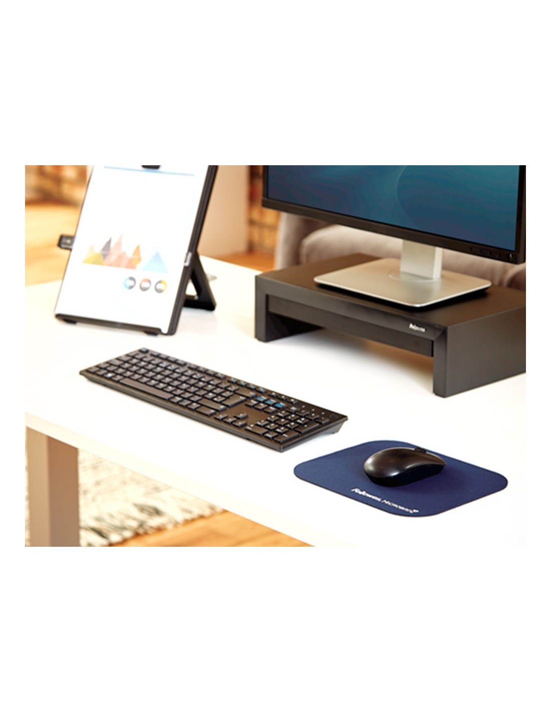 Alfombrillas para ratón fabricadas con tratamiento anti-bacterias Microbanque proporciona protección contra los gérmenes. Base de goma antideslizan te y superficie de poliester para un buen movimiento del ratón. Color azul. Medidas: 22,6x19,2x0,3 cm.