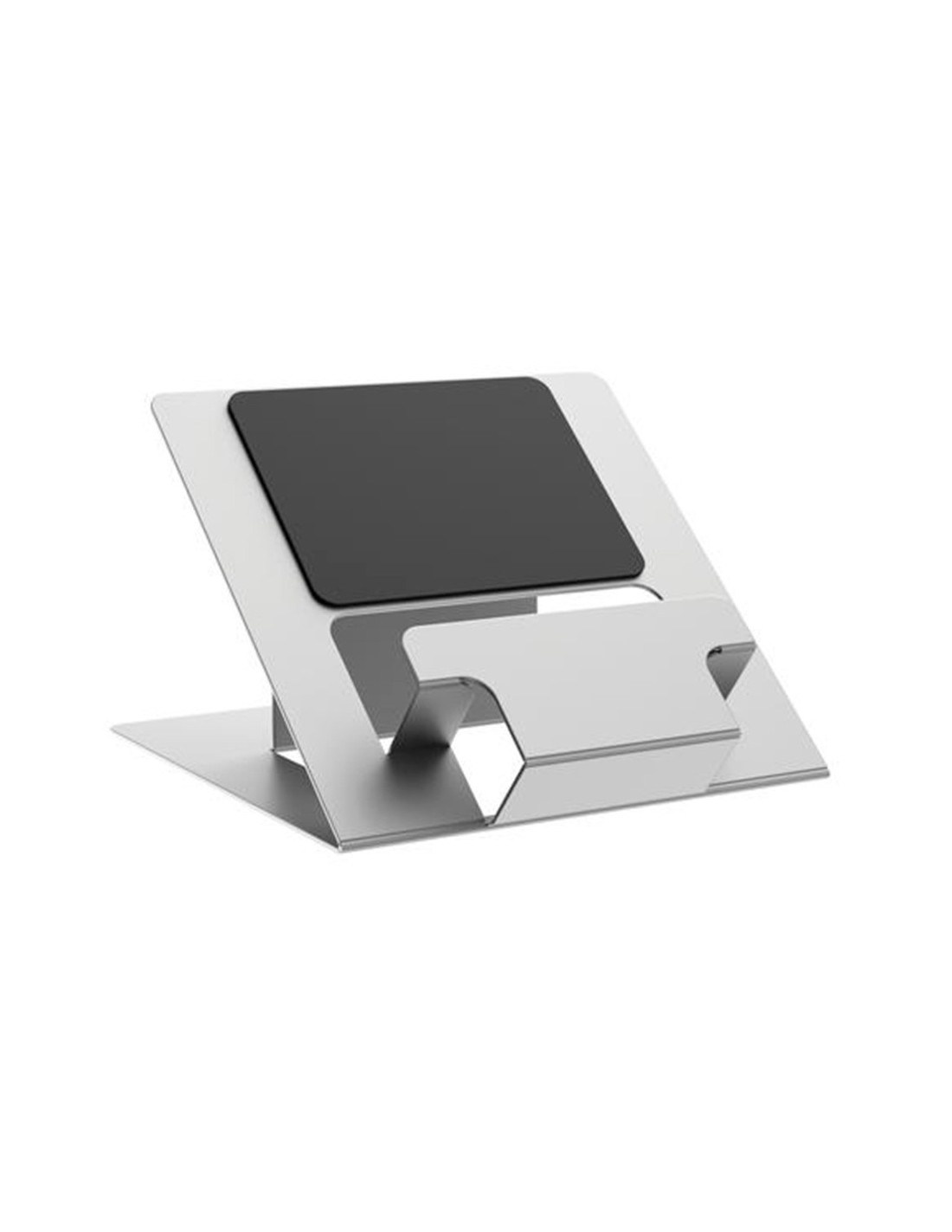Soporte para portátil fabricado en aluminio que eleva la pantalla a la altura adecuada reduciendo la tensión en cuello, brazos y ojos. Diseño minimalista y ligero, fabricado en aluminio hylite. Se pliega completamente. Se suministra con bolsa de almacenamiento que se puede usar como alfombrilla de ratón. Ajustable a 6 alturas. Plataforma recortada que permite que el portátil esté ventilado y dejar accesibles todos los puertos. Medidas: 238 x 60 x 246 mm.
