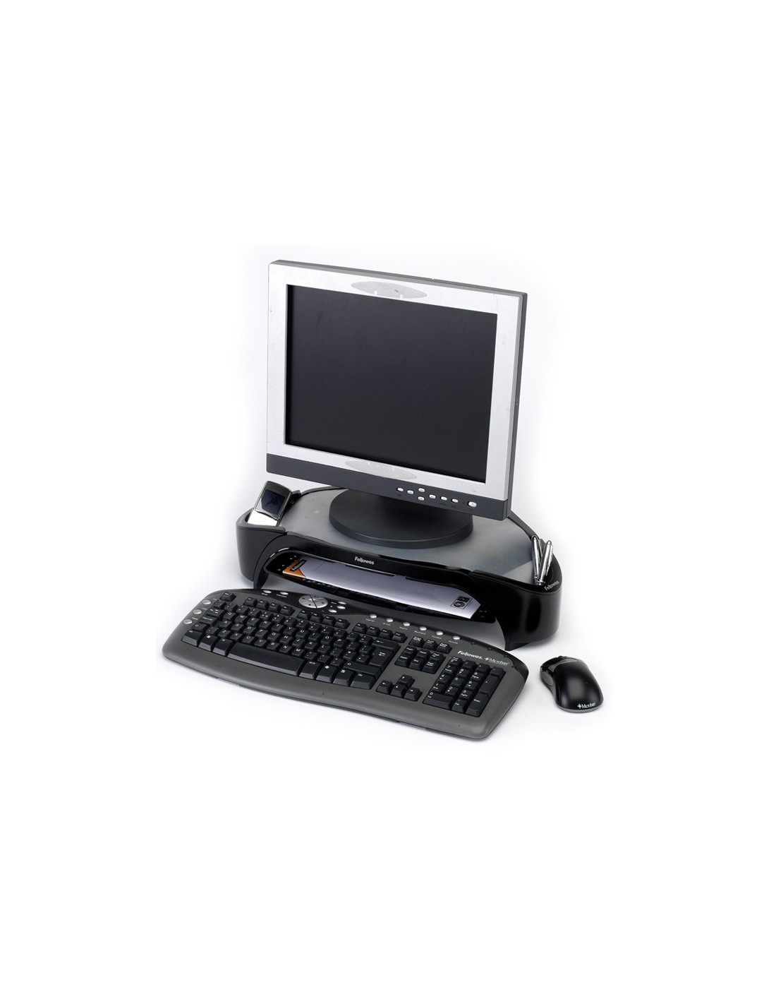 Ajusta la pantalla a la altura de los ojos para prevenir malas posturas. Diseño triangular que permite un puesto de trabajo despejado. Ajustable a 3 alturas. Incluye 2 departamentos para colocar accesorios, móvil, etc. Incluye bandeja de documento. Soporta monitores TFT hasta 21 o hasta 18 kg de peso. Medidas: 480 x 105 x 330 mm. Peso: 1,5 kg.