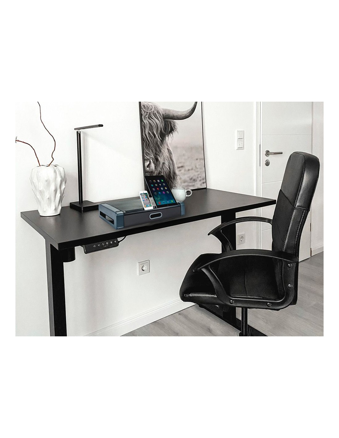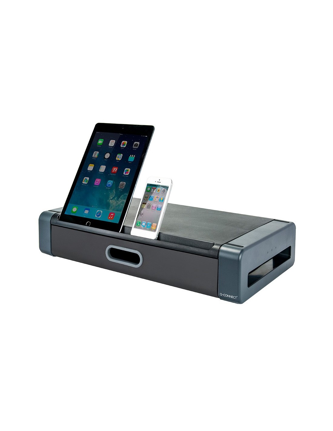 Soporte de monitor amplio y resistente. Con cajón para organizar los artículos esenciales de oficina. Ajusta la pantalla para evitar las tensiones en el cuello. Medidas: 486 x 96 x 276 mm. Peso: 1,9 kg.