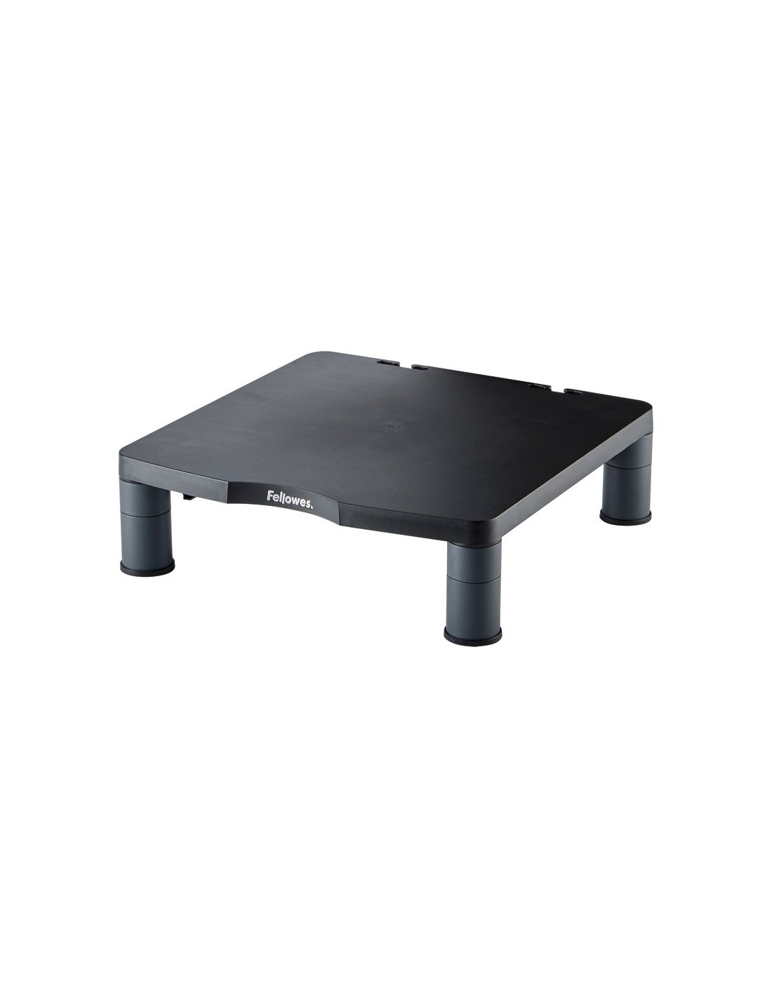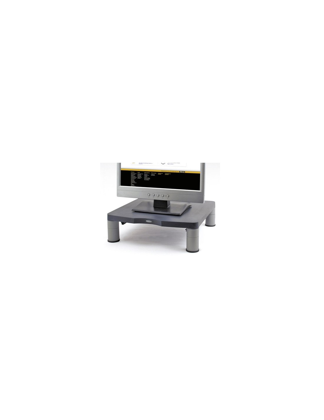 Soporte para monitor estándar. Fabricado en plástico 100% reciclado. Con patas antideslizantes para garantizar la estabilidad en cualquier tipo de superficie.Ajusta la pantalla a la altura de los ojos para prevenir malas posturas. Ajustable en altura de 50 mm a 100 mm. Soporta pantallas de hasta 27 kg de peso, CRT o TFT/LCD de 17 . Medidas: 340 x 50/100 x 340 mm. Peso: 0,72 kg.