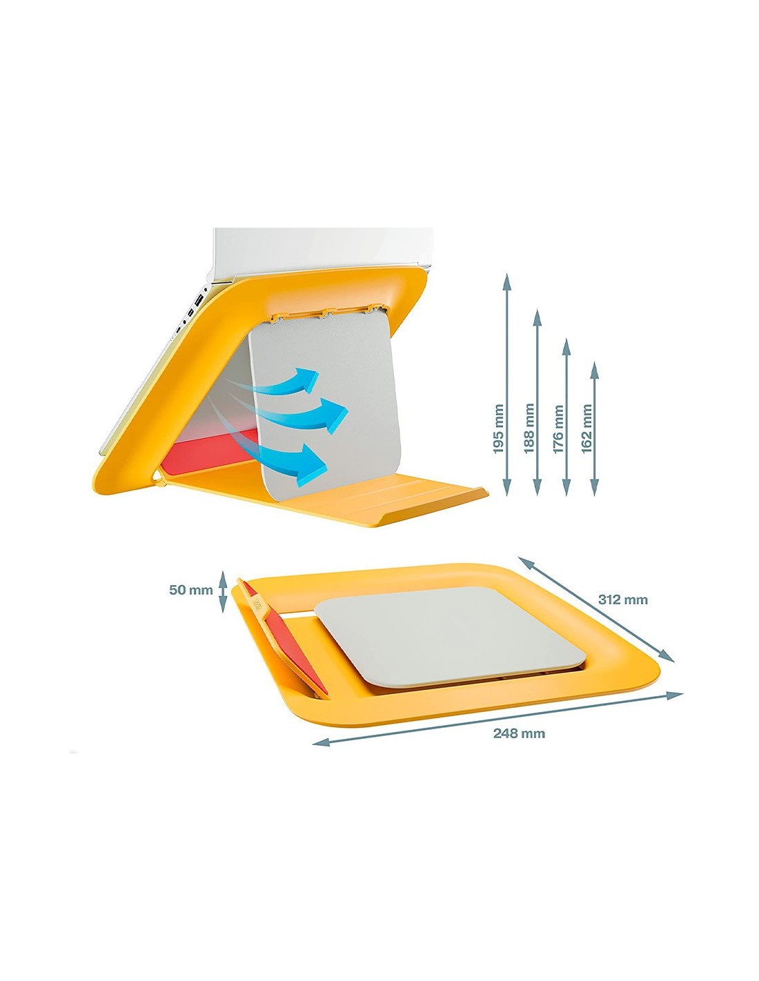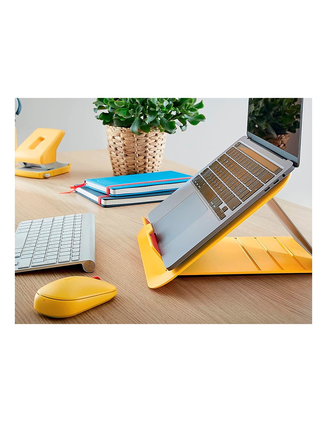 El elevador Leitz Ergo Cosy para portátil eleva la pantalla de tu ordenador portátil para aumentar tu comodidad de visualización y ayudar a mejorar la postura. El uso de un elevador para portátiles también favorece el flujo de aire, manteniendo la batería del portátil y otros componentes frescospara mantener altos niveles de rendimiento. Con su diseño minimalista y s us colores de acabado mate, este elegante soporte para portátiles mejorarála salud y el bienestar creando sin esfuerzo la configuración perfecta pa ra el trabajo activo. Combínalo con otros productos Leitz Ergo para crear un espacio de trabajo acogedor y flexible que te mantenga en movimiento todo el día.