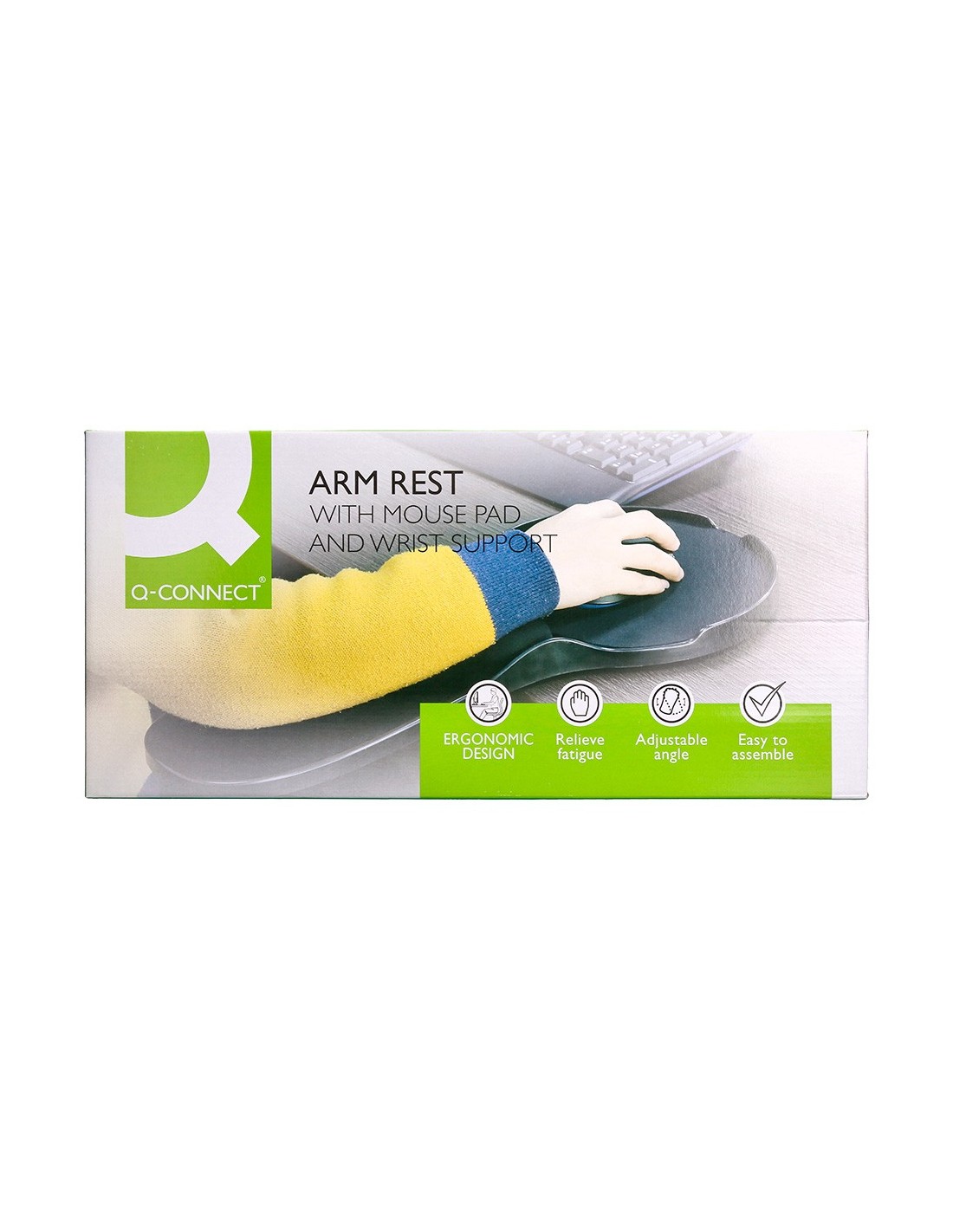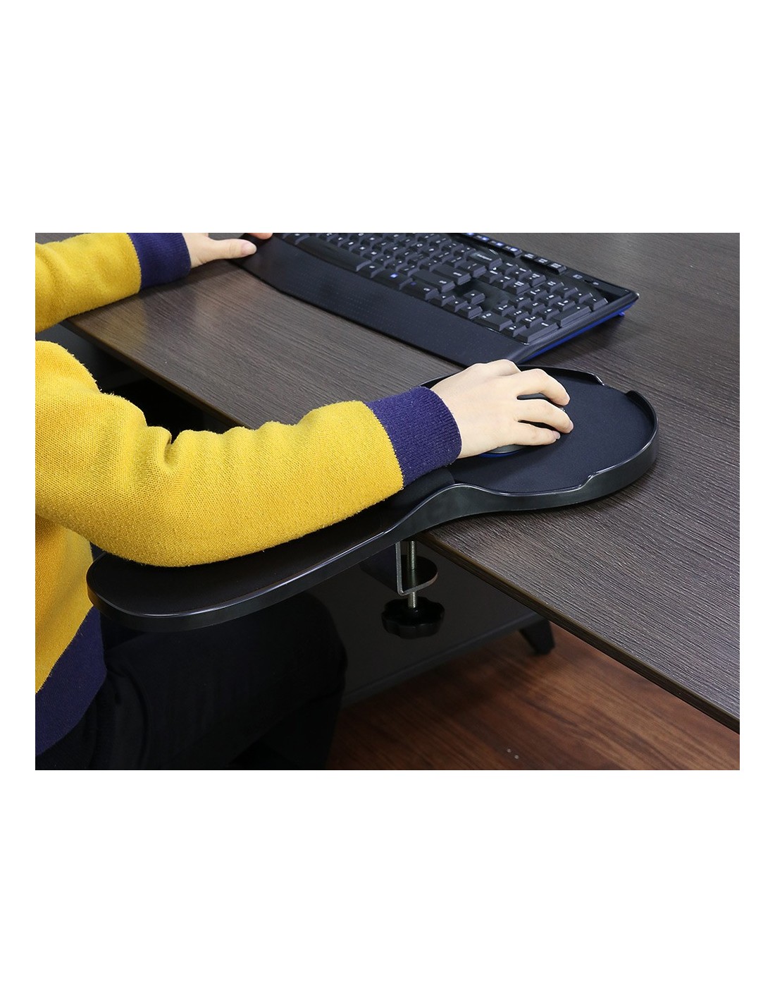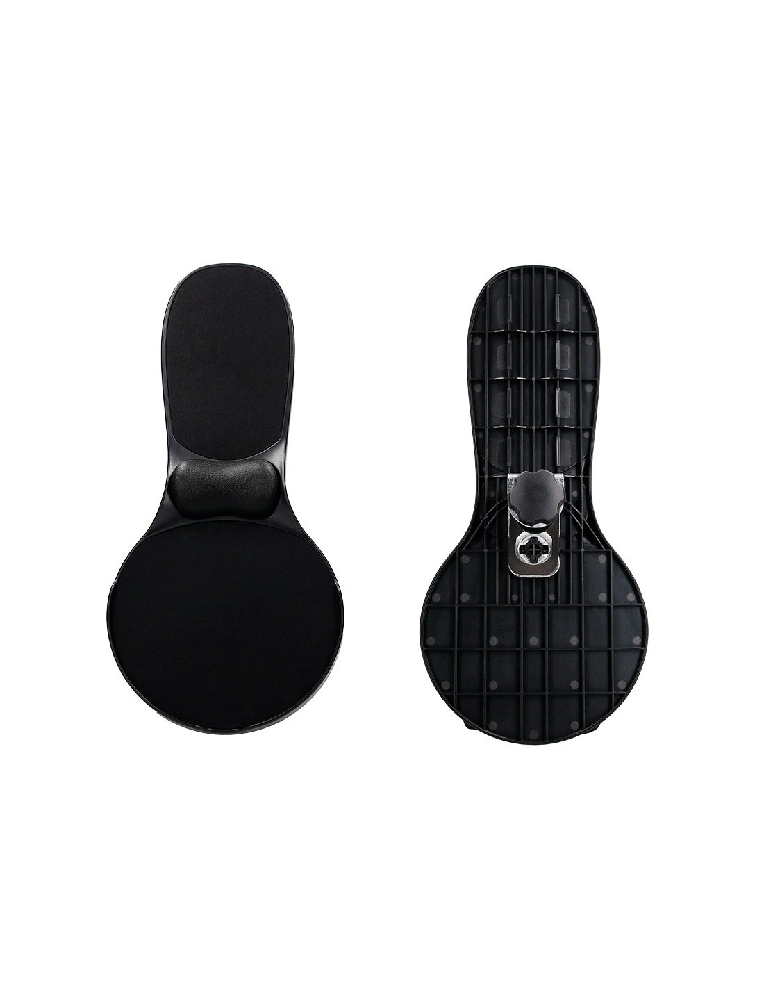 Apoyabrazo ergonómico con reposamuñecas de gel y alfombrilla de ratón. Permite sostener el brazo y la mano. Alivia las tensiones en la muñeca y el brazo. Montaje fácil sobre cualquier mesa. Medidas: 220 x 140 x 480 mm. Color negro.