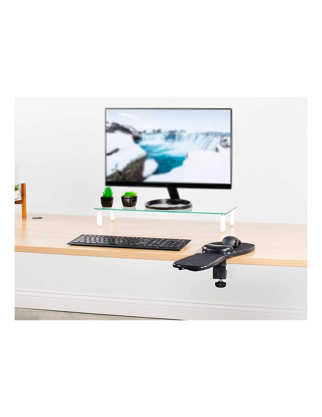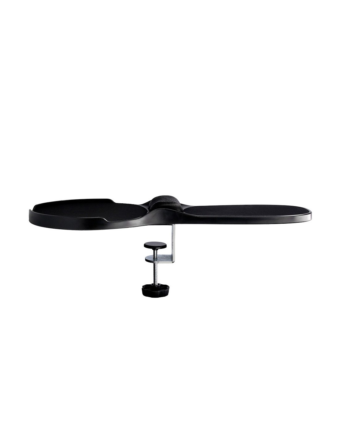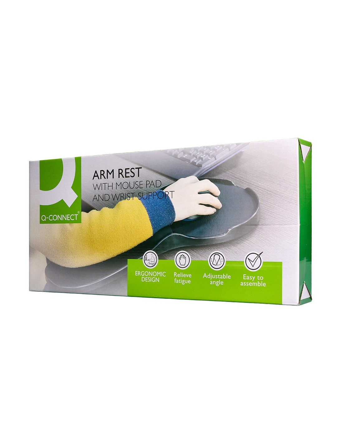 Apoyabrazo ergonómico con reposamuñecas de gel y alfombrilla de ratón. Permite sostener el brazo y la mano. Alivia las tensiones en la muñeca y el brazo. Montaje fácil sobre cualquier mesa. Medidas: 220 x 140 x 480 mm. Color negro.