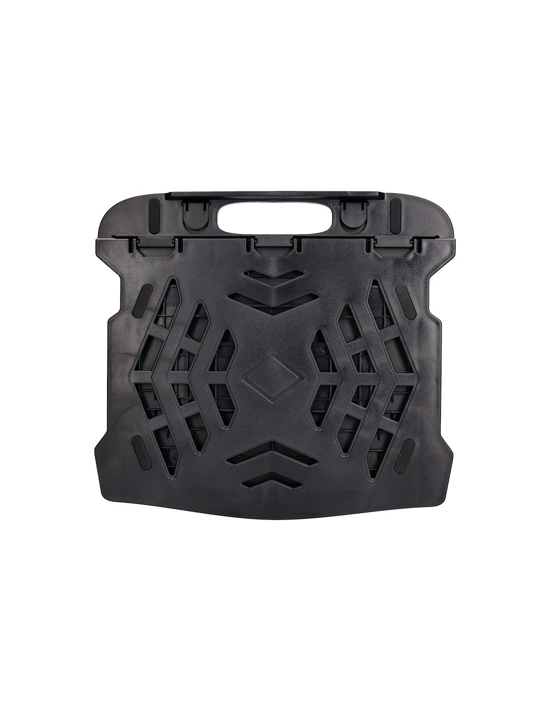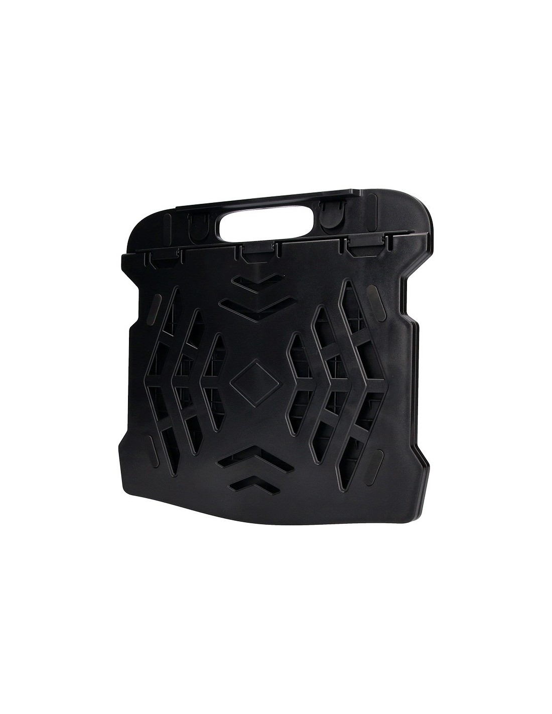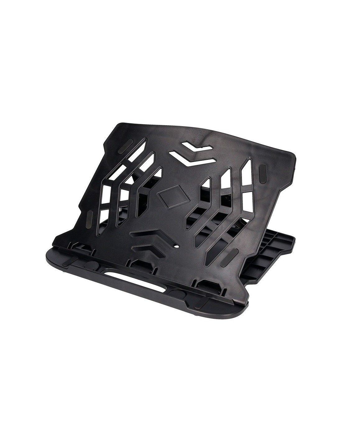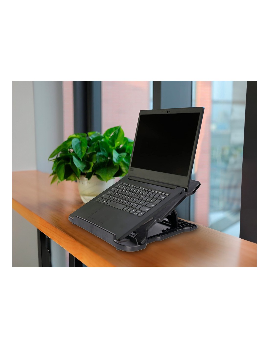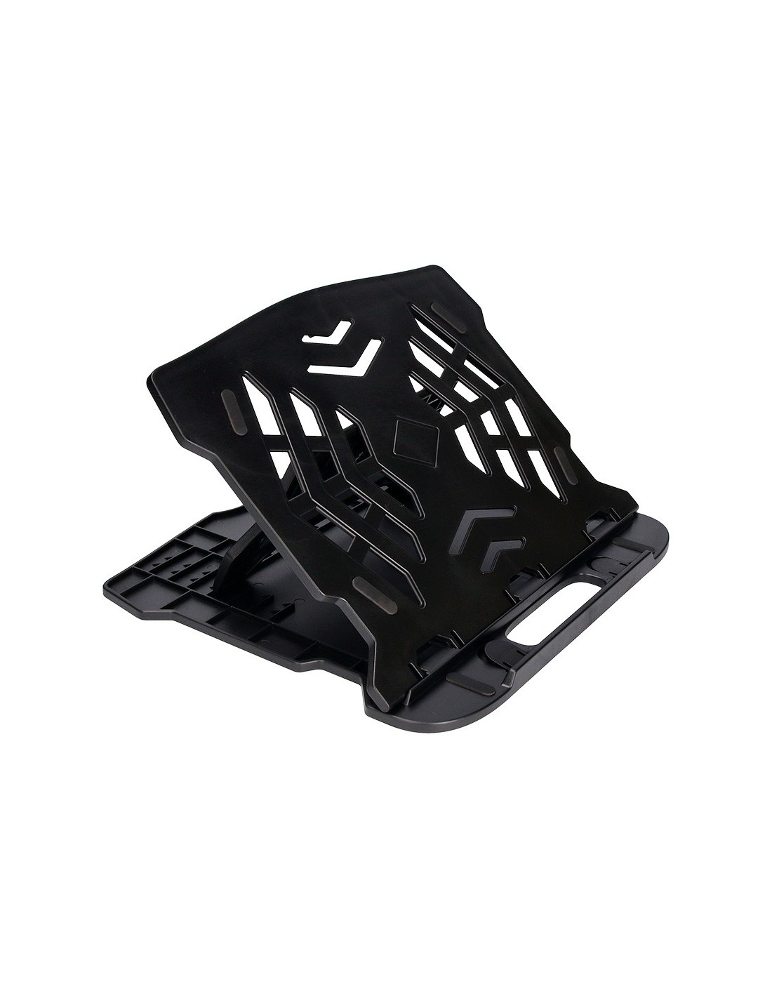 Soporte para portátil. Regulable en varias posiciones. Permite colocar el portátil en la posición deseada, hasta 7 posiciones. Para portátiles hasta 17 pulgadas o 5 kg. Su abertura permite la entrada de aire al portátil. Se pliega para un fácil transporte. Color negro. Medidas: 260 x 280 x 60 mm. Peso: 0,46 kg.