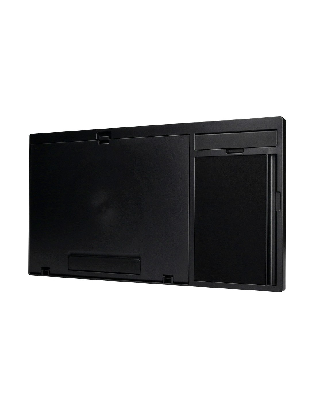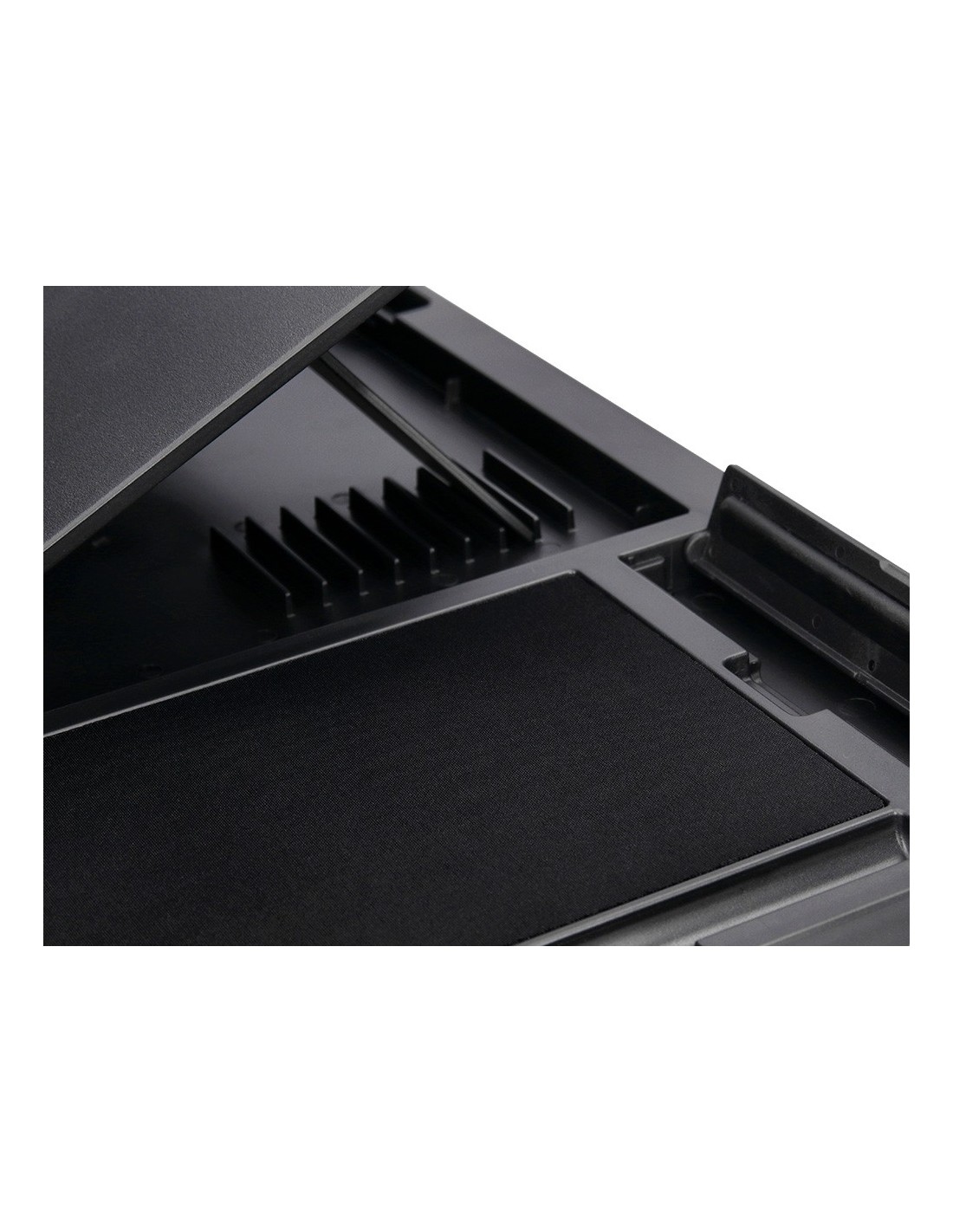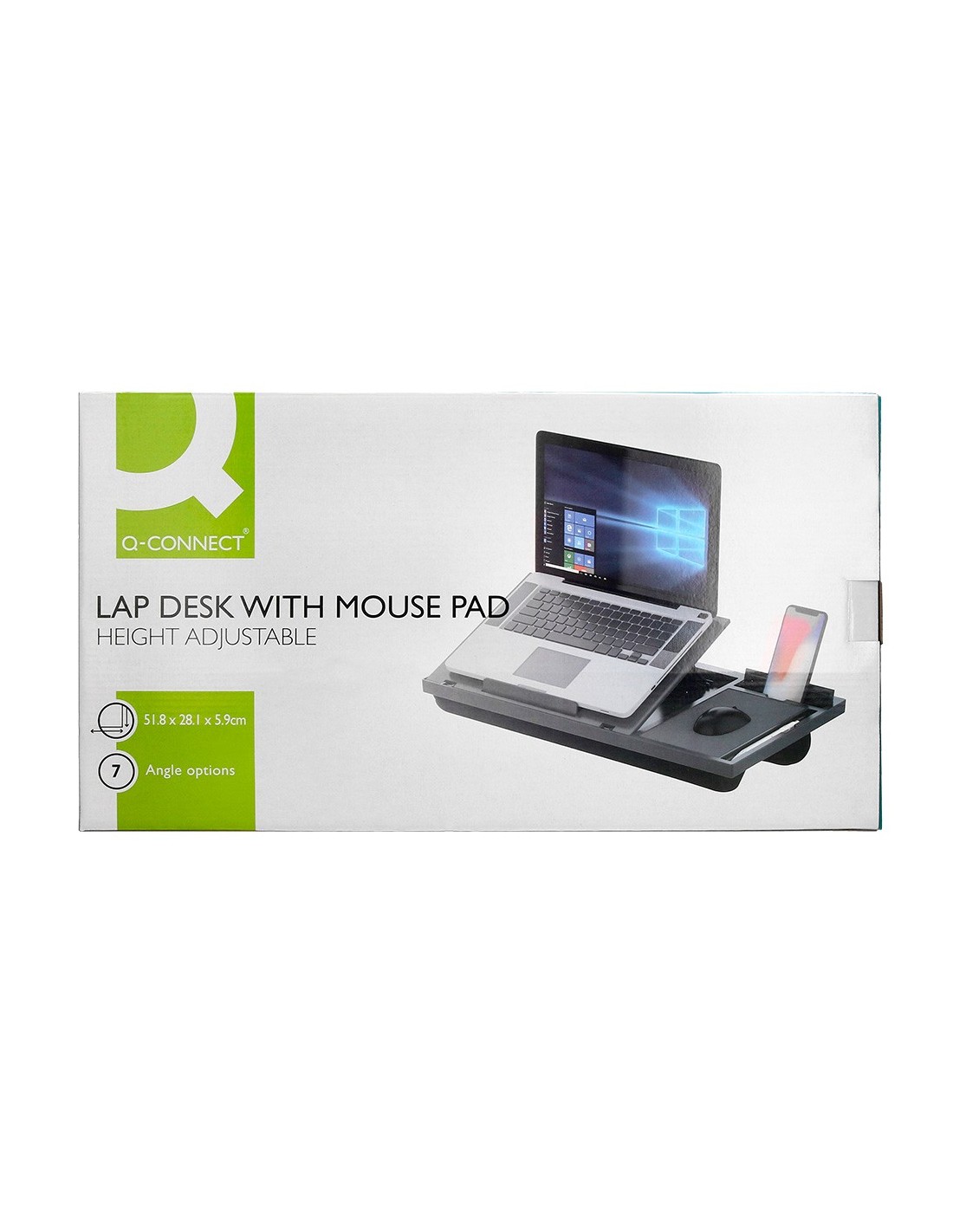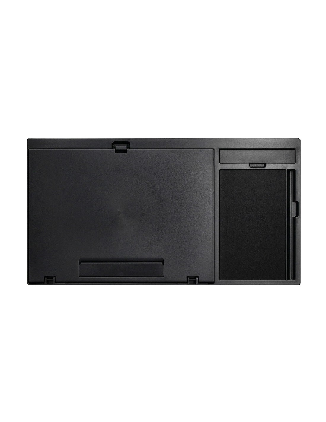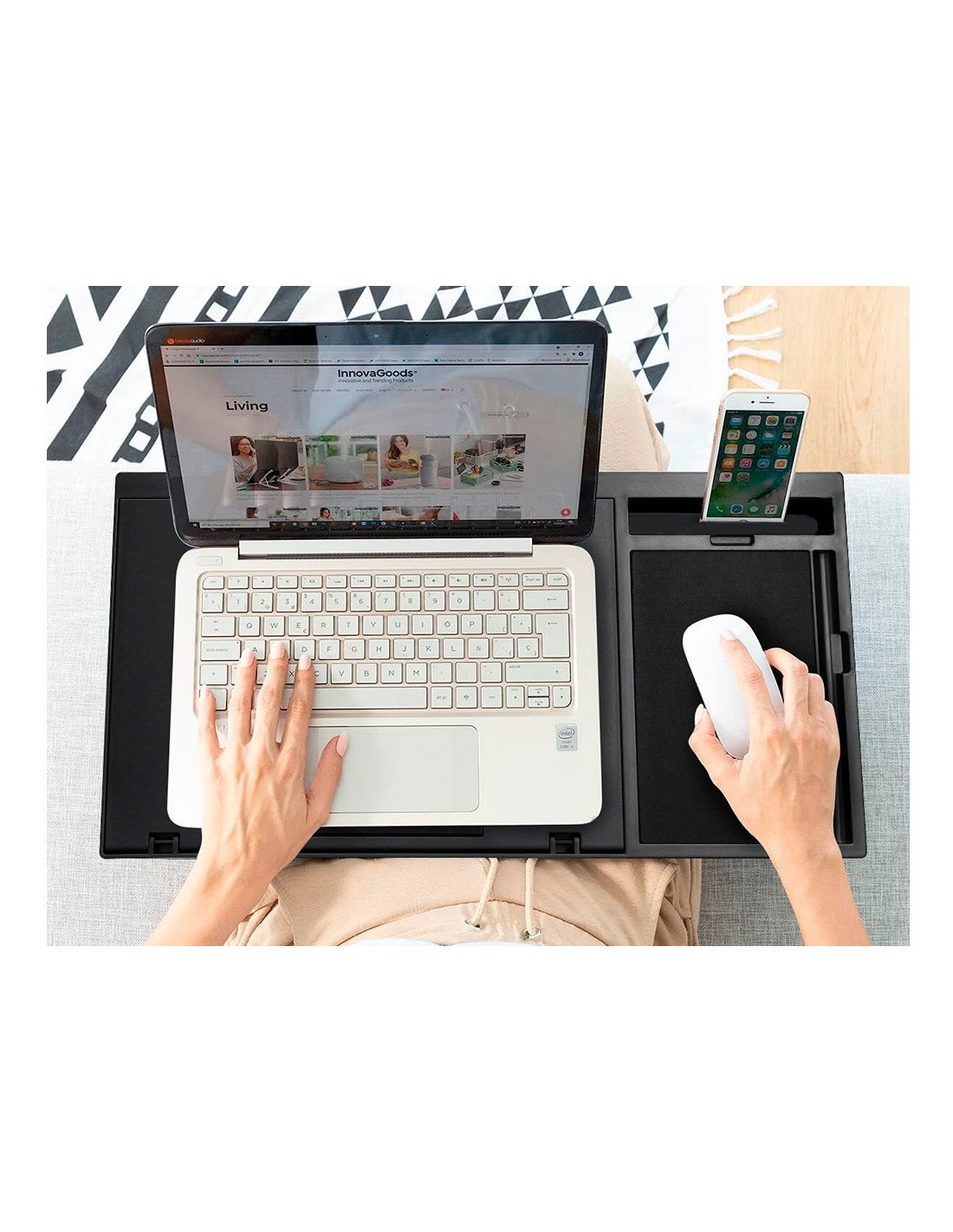 Soporte para portátil multifuncional. Este soporte para monitor se compone de una base para portátil ajustable en 7 posiciones. Con un tope frontal para evitar la caída del portátil, 1 soporte para móvil y una alfombrilla de ratón grande. Se puede utilizar como soporte para portátil, soporte de trabajo, mesa de lectura o para cualquier situación que necesite. Se puede utilizar en la cama, en el sofá o en viajes. Para portátiles hasta 17 pulgadas o 5 kg. Color negro. Medidas: 520 x 280 x 60 mm. Peso: 1,6 kg.