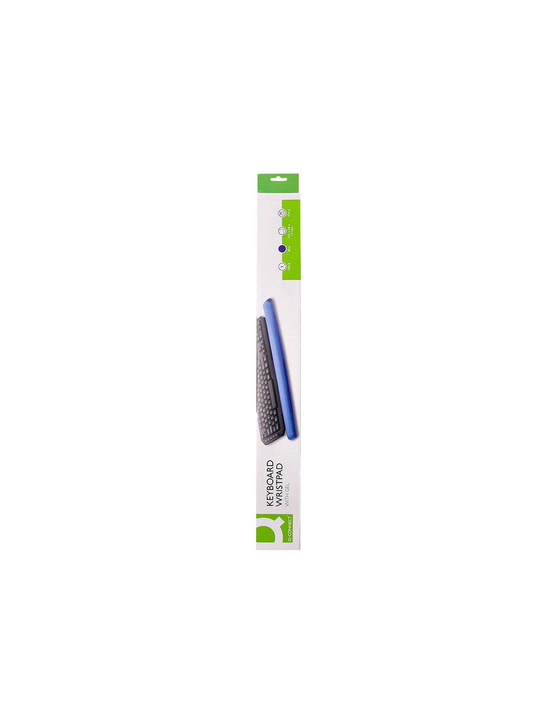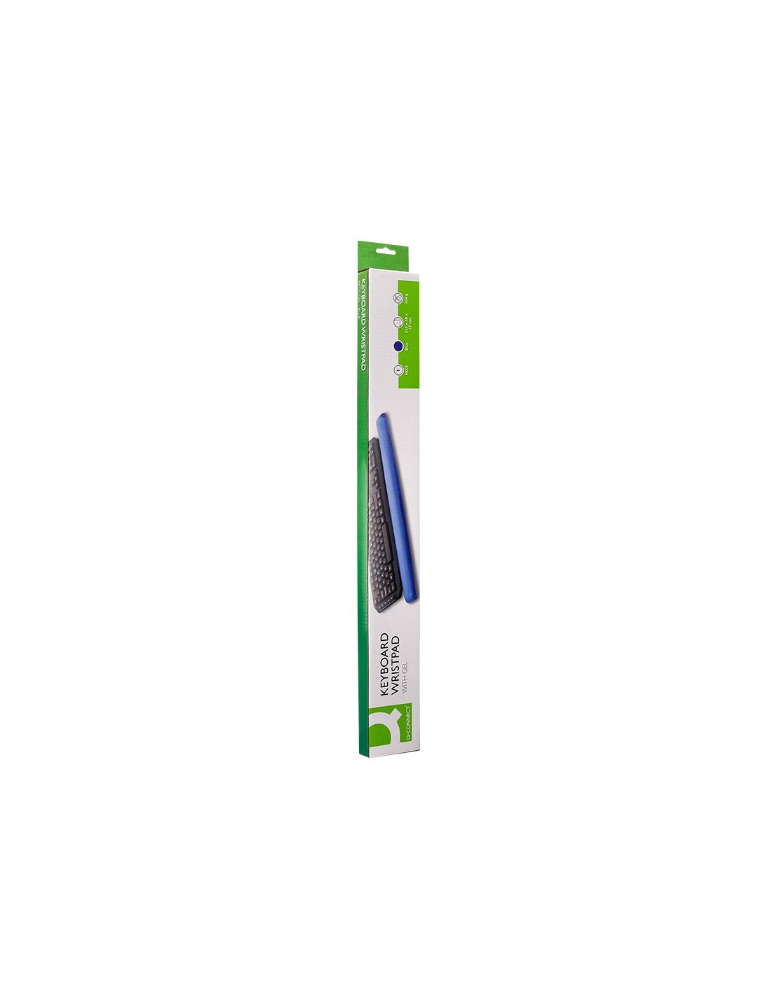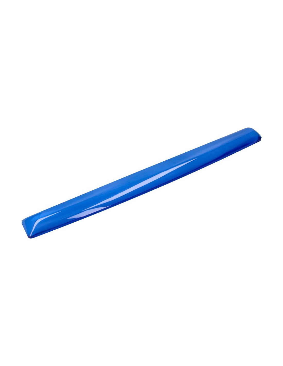 Reposamuñecas de gel para teclado. Laterales biselados. Materiales: TPU y base PU. Medidas: 525 x 58 x 17 mm. Color azul.