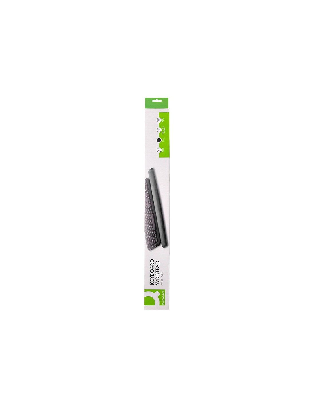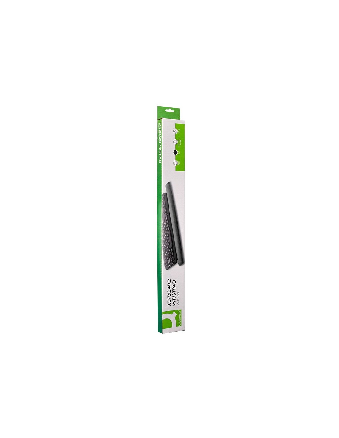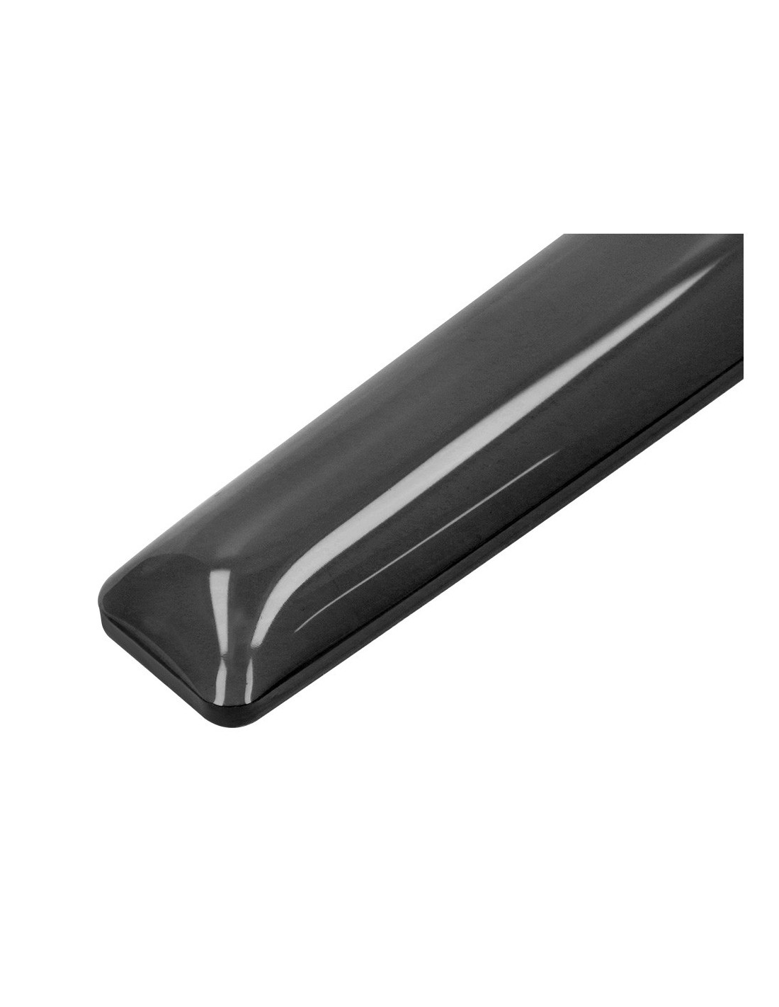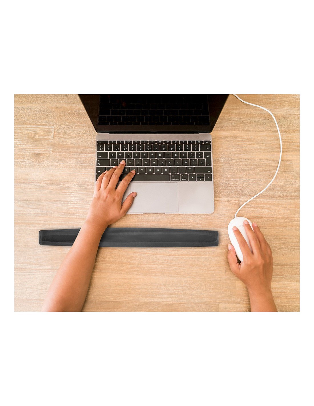 Reposamuñecas de gel para teclado. Laterales biselados. Materiales: TPU y base PU. Medidas: 525 x 58 x 17 mm. Color negro.