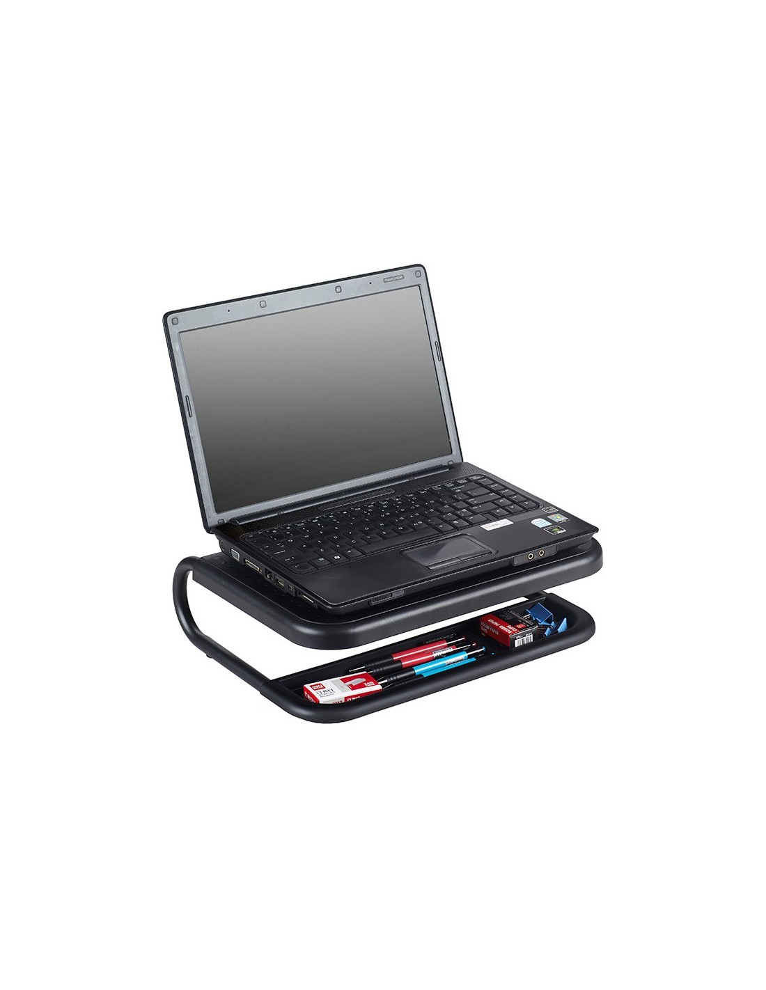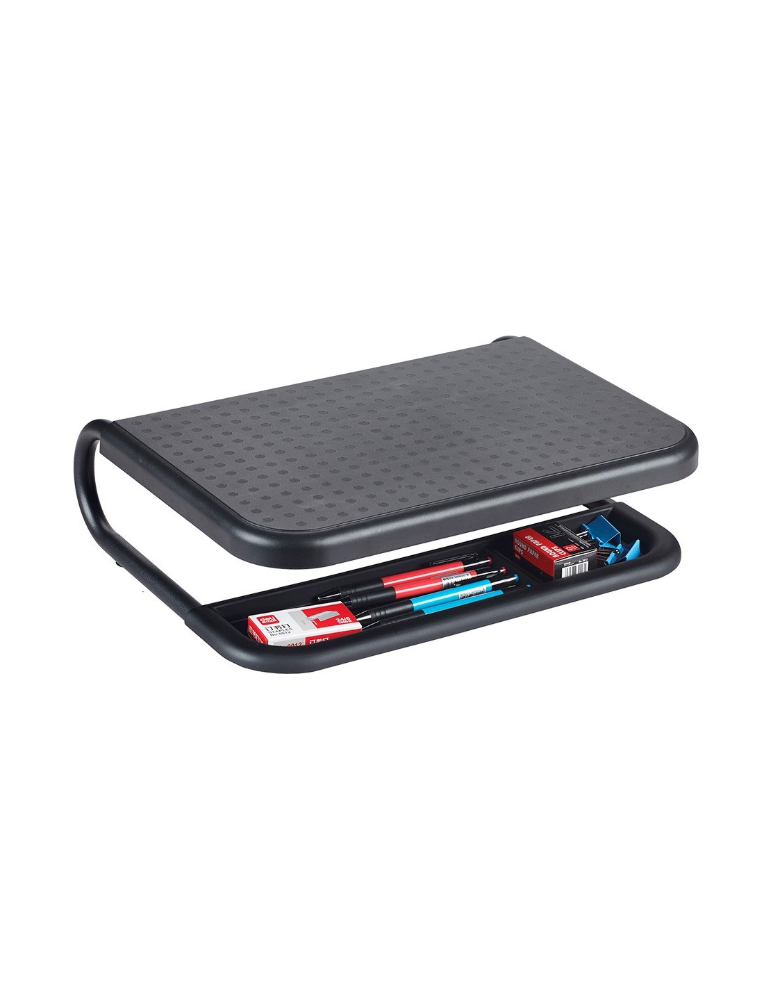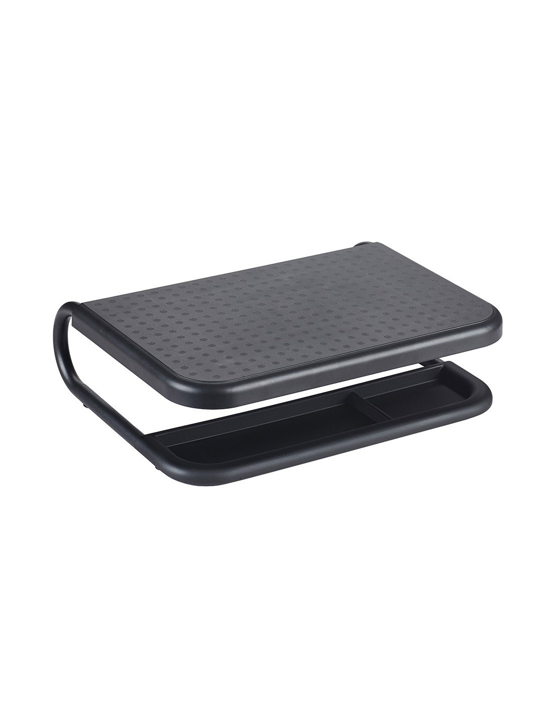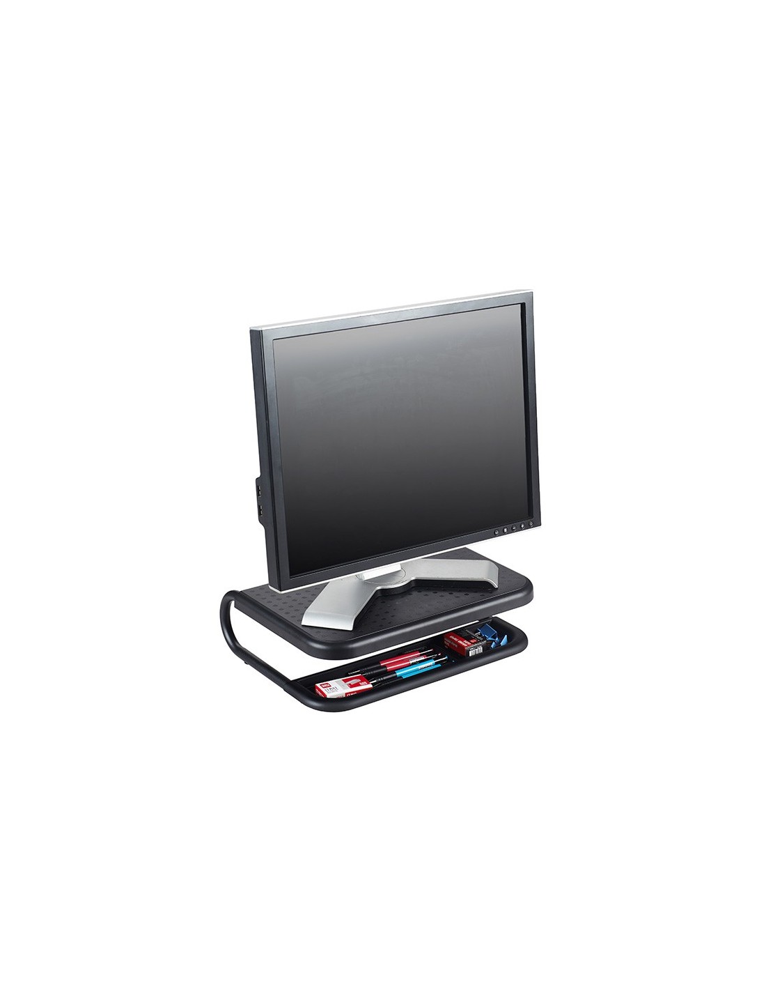 El soporte para monitor proporciona una solución ergonómica y versátil para mejorar la comodidad y la organización en su espacio de trabajo. Fabricado con una resistente combinación de HIPS (High Impact Polystyreney) y metal, este soporte cuenta con una plataforma acolchada antideslizante que ofrece una superficie segura para su monitor. Con un generoso espacio de almacenamiento debajo, ideal para organizar documentos u otros accesorios de oficina, y un gestor de cables integrado en la parte posterior para mantener los cables ordenados y fuera de la vista. Además, su base antideslizante garantiza una colocación estable en su escritorio. Con capacidad para soportar hasta 15 kg, este soporte eleva su monitor a una altura ergonómica ca de 11 cm, ofreciendo una experiencia de visualización más cómoda y saludable. Su diseño elegante en color negro complementa cualquier entorno de trabajo con estilo y funcionalidad.