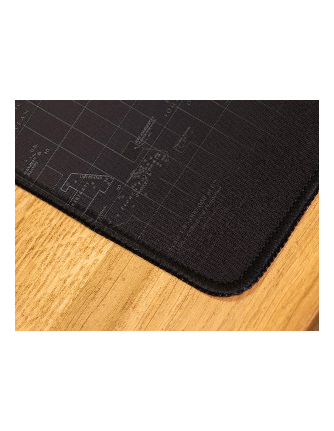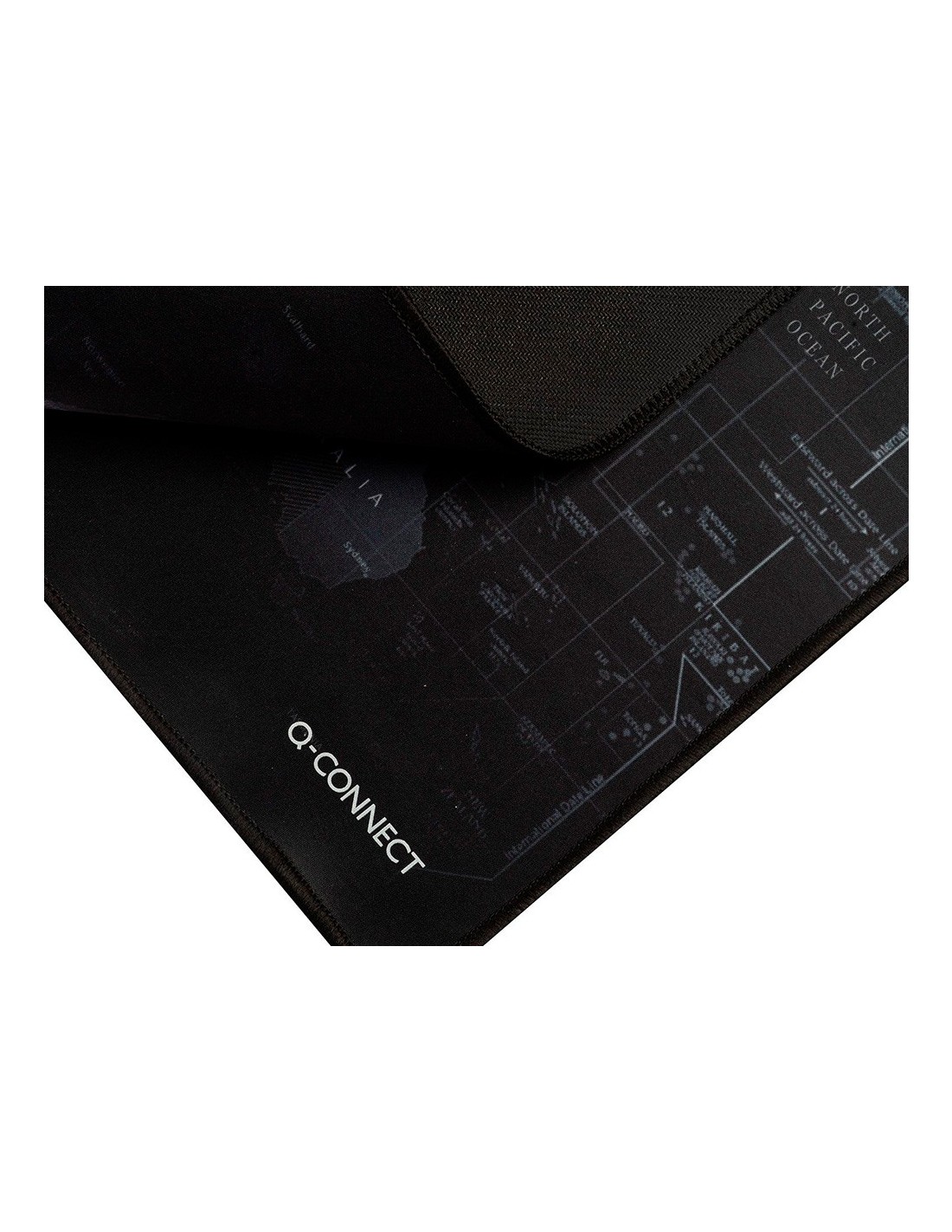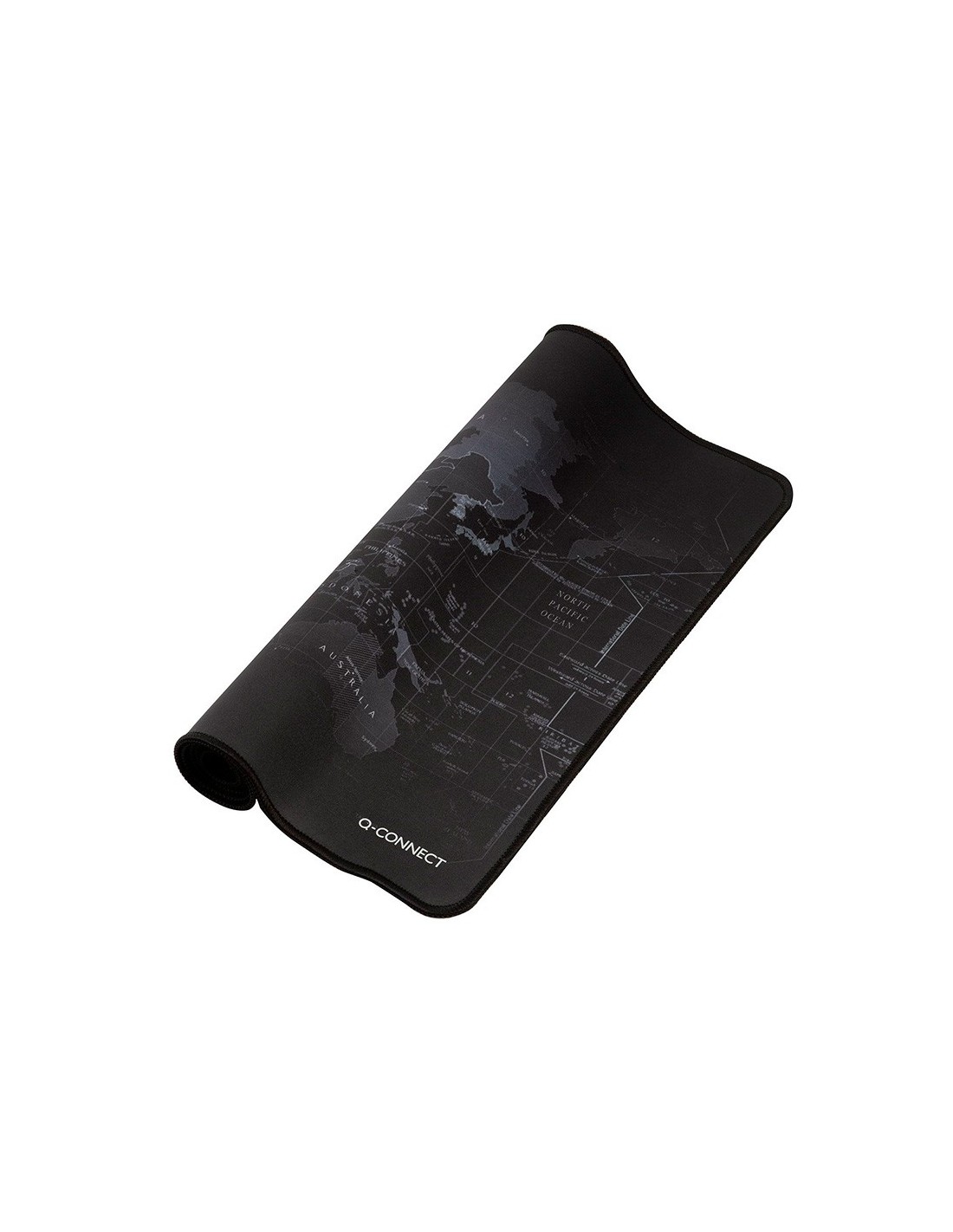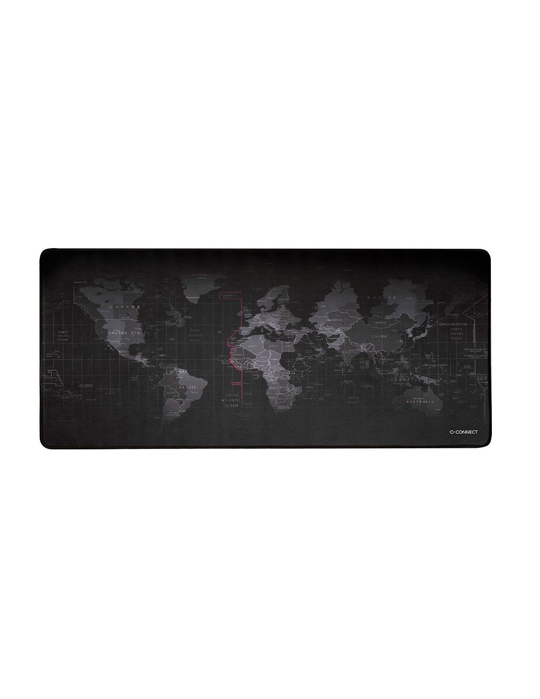 Alfombrilla de gran tamaño para ratón. Esquinas redondeadas. Superficie fabricada en poliéster para un buen rodamiento del ratón. Bordes cosidos para soportar una mayor abrasión por roce y aguantar el desgaste por uso. Parte inferior antideslizante y semiflexible, para aumentar el agarre y la sujeción estable en superficies lisas. Color negro y diseño mapa del mundo. Medidas: 900 x 400 mm.