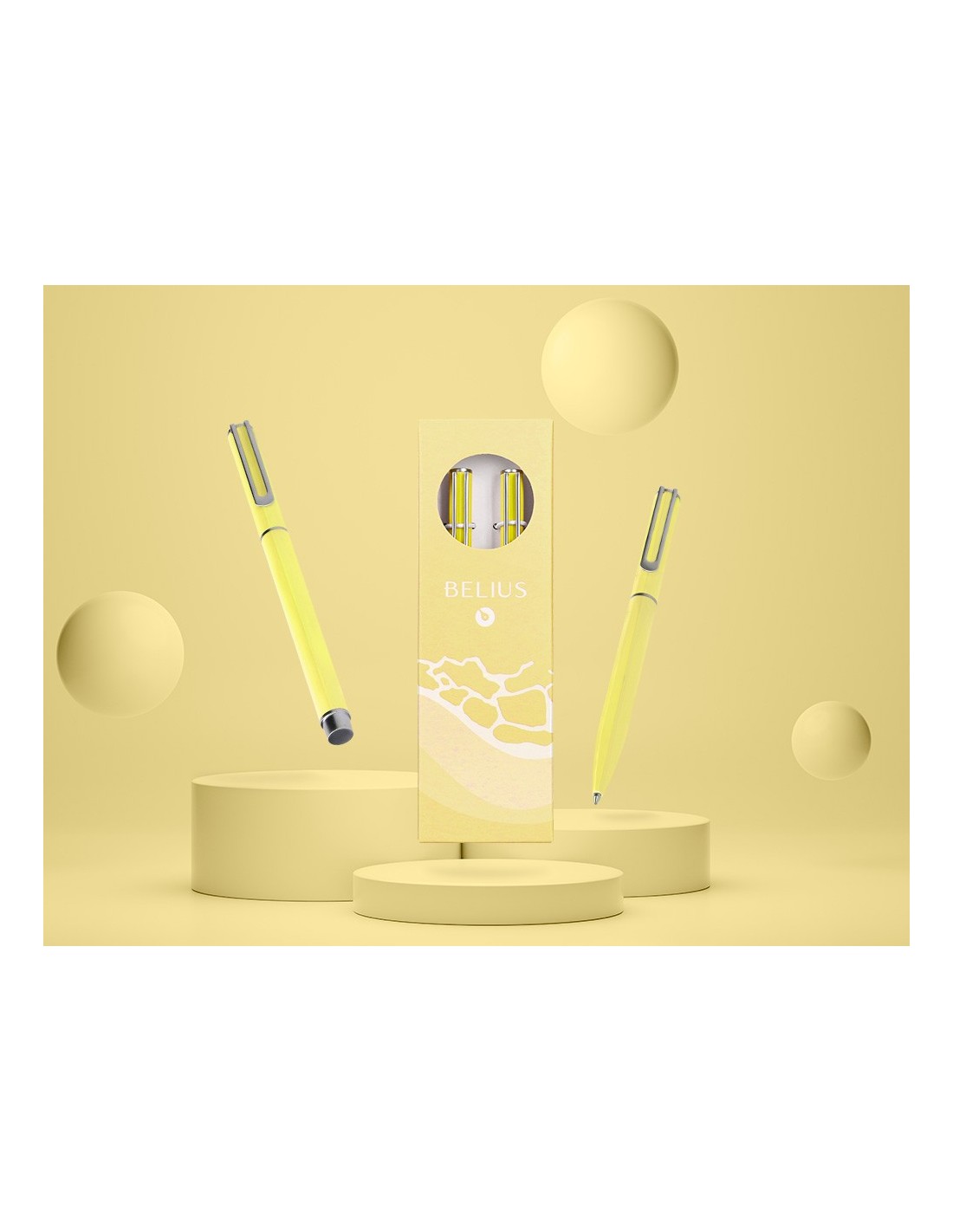 Bolígrafo y roller Endless Summer con diseño juvenil y desenfadado, bañados en un color amarillo limón con detalles metálicos plateados. Estos instrumentos de escritura están cuidadosamente presentados en una moderna caja con una apertura frontal que permite ver las piezas. Esta colección busca capturar la esencia de la felicidad y la libertad que se experimenta durante los días de verano. Inspira a mantener viva esa sensación y sugiere que la alegría y la vitalidad que se experimenta en esa época pueden perdurar indefinidamente. Es un homenaje al espíritu del verano y a las emociones que esta estación despierta en nosotros y transmite la vitalidad y la alegría que nos brinda el sol radiante y los días interminables. Con cada trazrazo, te invita a disfrutar de la sensación eterna del verano. Tinta color azul. Grosor tamaño: bolígrafo 0,8 mm, roller 0,7 mm.