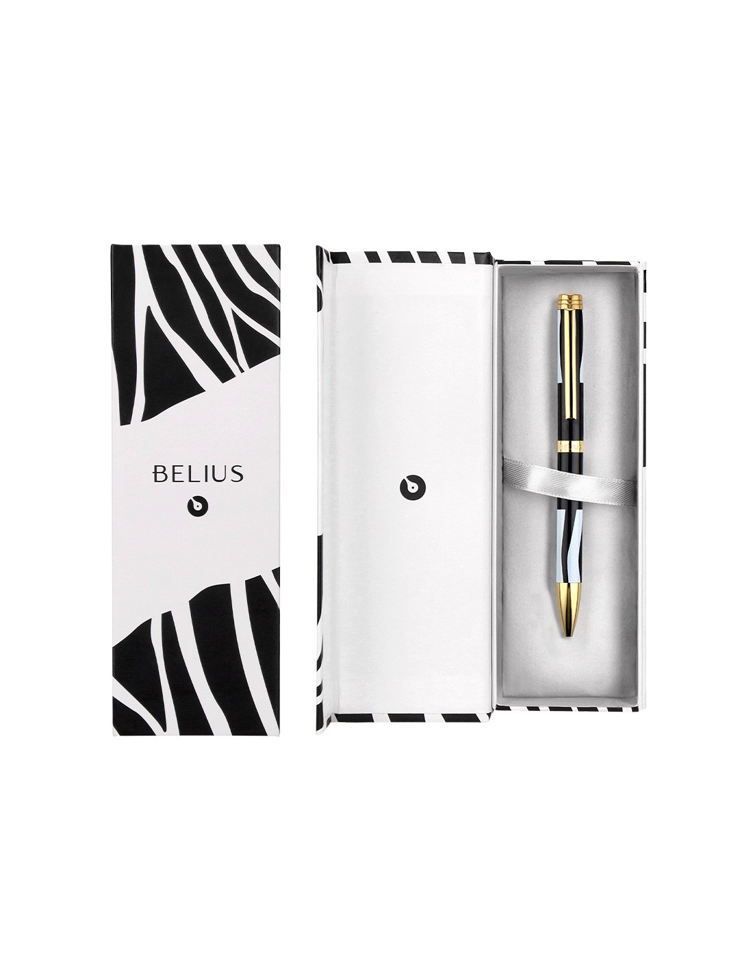 El bolígrafo Dualità combina un diseño moderno y atrevido, con un cuerpo en color negro decorado con trazos estilo cebra en blanco y detalles metálicos dorados. Viene presentado en una moderna caja de cierre magnético que juega con la inversión de colores, incorporando una solapa interior en contraste. El diseño en blanco y negro invertidos representa el contraste y la dualidad presentes en la juventud, capturando su energía. La colección se caracteriza por su diseño elegante, contemporáneo con un estilo único. Cada detalle ha sido cuidadosamente elegido para crear un impacto visual fuerte y llamativo. Tinta color azul. Grosor tamaño 1 mm.