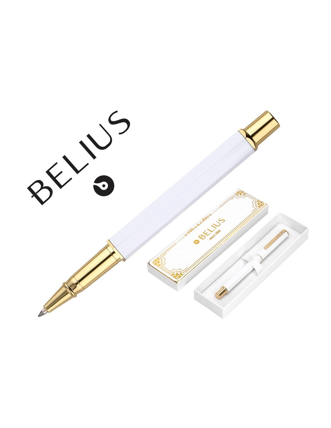 BOLIGRAFO BELIUS MACARON BLISS HEXAGONAL BL.Y DORADO AZ. CAJA DISEÑO