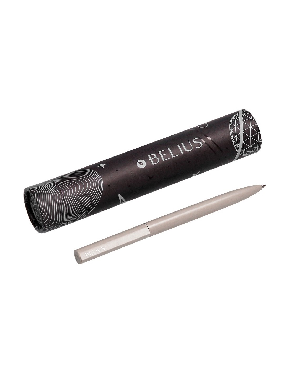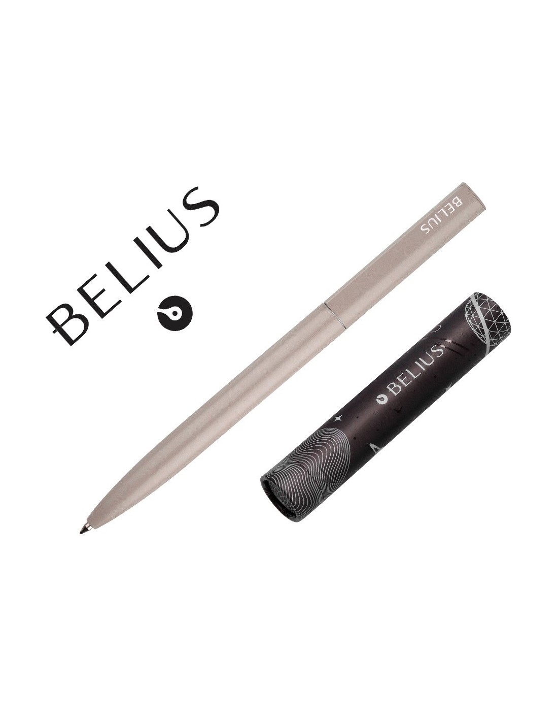BOLIGRAFO BELIUS ROCKET B AL. MINIMALISTA GRIS AZ. CAJA CILINDRICA