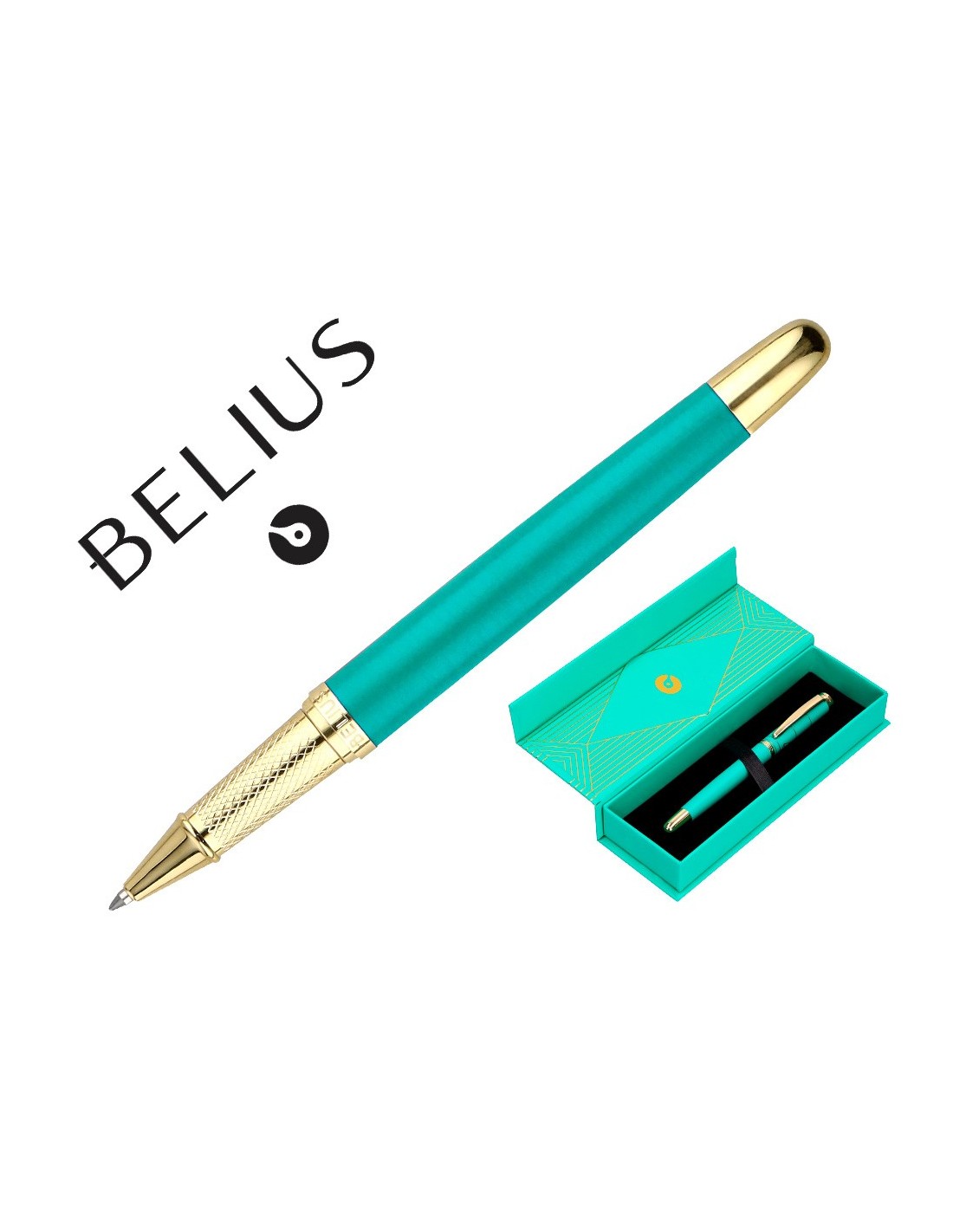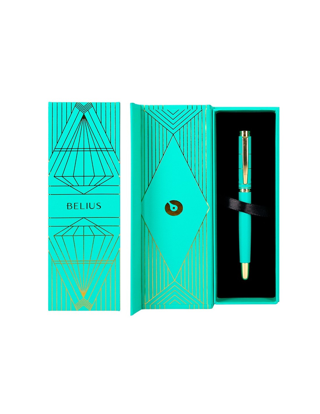 BOLIGRAFO BELIUS SOIREE AL.COLOR ART DECO TURQ.Y GOLD AZ. CAJA DISEÑO