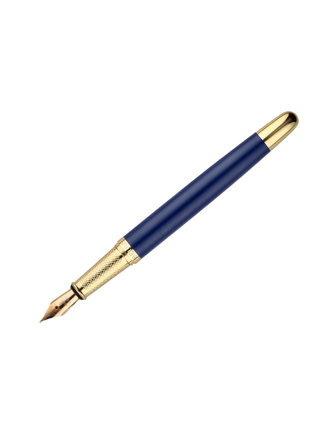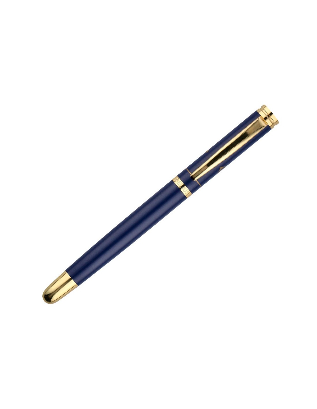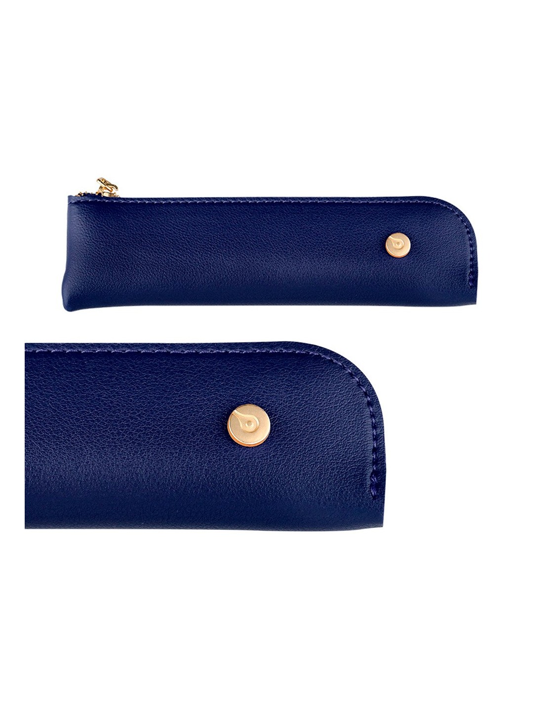 La pluma Soirée es una pieza en color negro con elegantes detalles en dorado, acompañada de un estuche de símilpiel del mismo color, adornado con un refinado detalle metálico dorado. Todo esto está contenido en una elegante caja de cierre magnético, decorada con un diseño Art Deco en dorado. Tanto el diseño de la pieza como el de la caja, hacen un guiño a los años 20 evocando la elegancia clásica del refinado estilo del Art Deco. La colección Soirée te invita a una velada especial, a través de cada pieza, meticulosamente diseñadas para capturar el encanto y el glamour de la época, combinando elementos modernos con un toque clásico y especial. Tinta color azul. Grosor tamaño M.