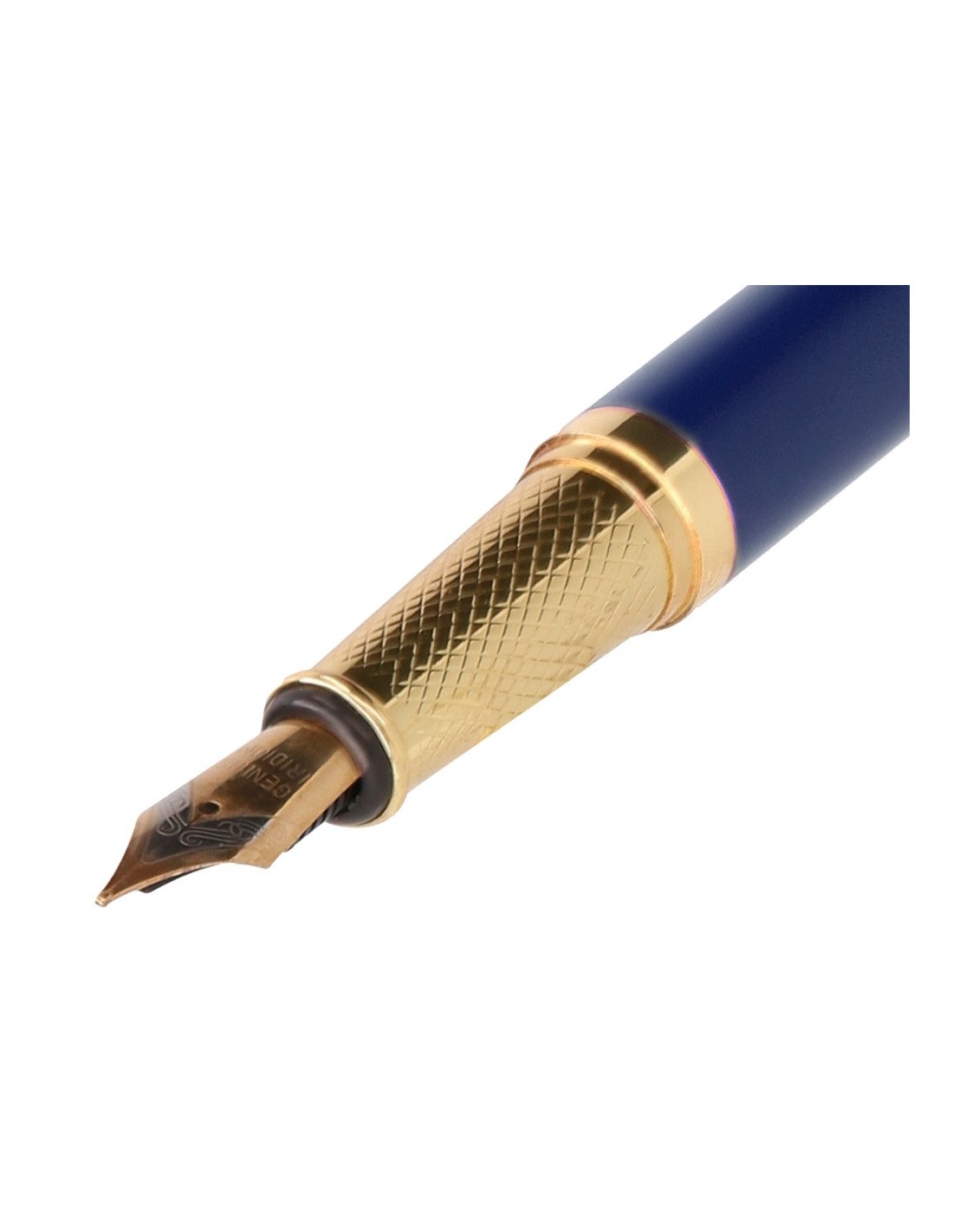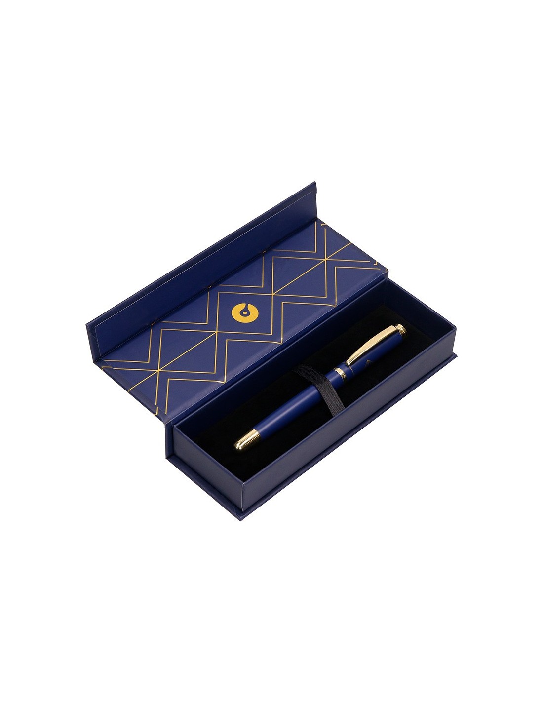La pluma Soirée es una pieza en color negro con elegantes detalles en dorado. Presentado en una elegante caja de cierre magnético, decorada con un diseño Art Deco en dorado. Tanto el diseño de la pieza como el de la caja, hacen un guiño a los años 20 evocando la elegancia clásica del refinado estilo del Art Deco. La colección Soirée te invita a una velada especial, a través de cada pieza, meticulosamente diseñadas para capturar el encanto y el glamour de la época, combinando elementos modernos con un toque clásico y especial. Tinta color azul. Grosor tamaño M.