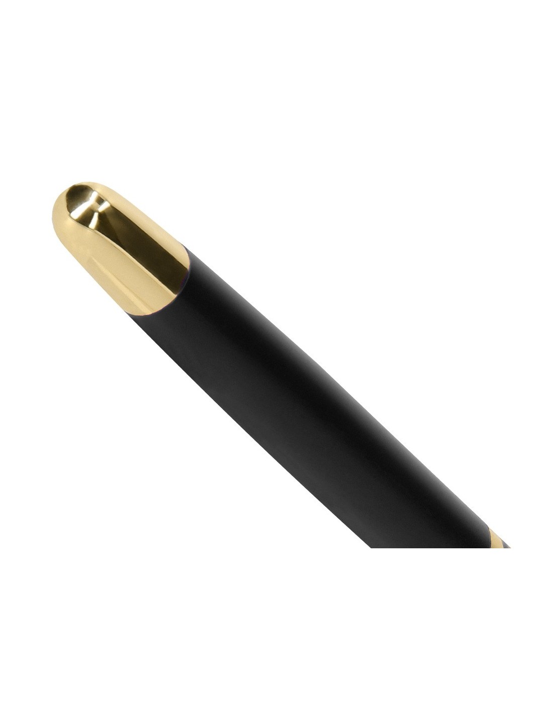 El bolígrafo Soirée es una pieza en color negro con elegantes detalles en dorado. Presentado en una elegante caja de cierre magnético, decorada con un diseño Art Deco en dorado. Tanto el diseño de la pieza como el de la caja, hacen un guiño a los años 20 evocando la elegancia clásica del refinado estilo del Art Deco. La colección Soirée te invita a una velada especial, a través de cada pieza, meticulosamente diseñadas para capturar el encanto y el glamour de la época, combinando elementos modernos con un toque clásico y especial. Tinta color azul. Grosor tamaño 0,8 mm.