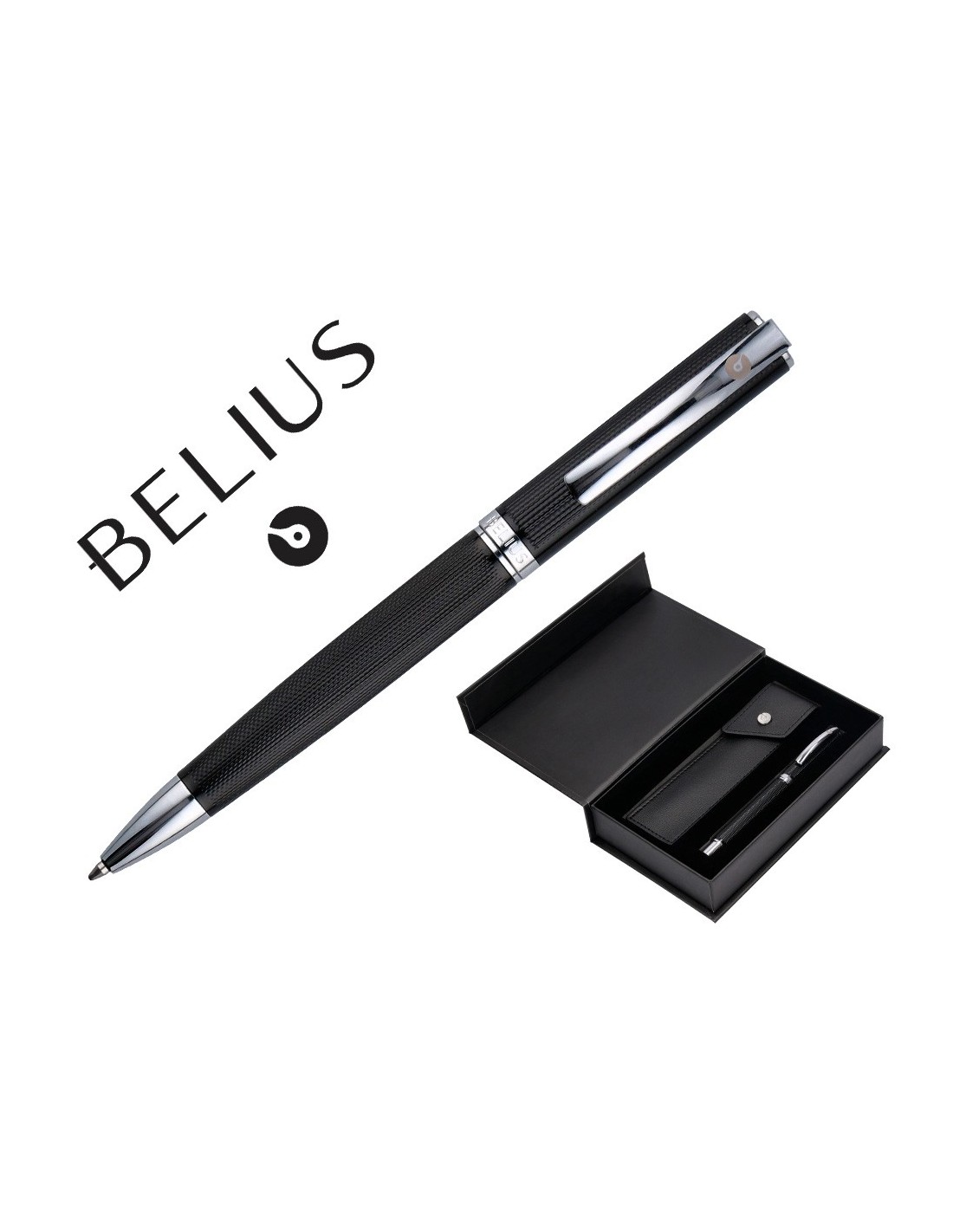 BOLIGRAFO BELIUS TURBO AL.TEXT PUNTEADA NG.Y PLATEADO AZ. CAJA DISEÑO