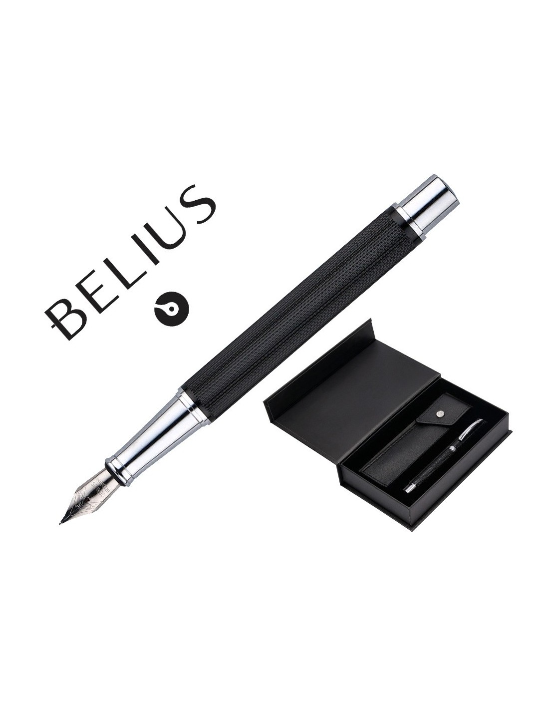 PLUMA BELIUS TURBO AL.TEXTURA PUNTEADA NG.Y PLATEADO TINTA AZ.