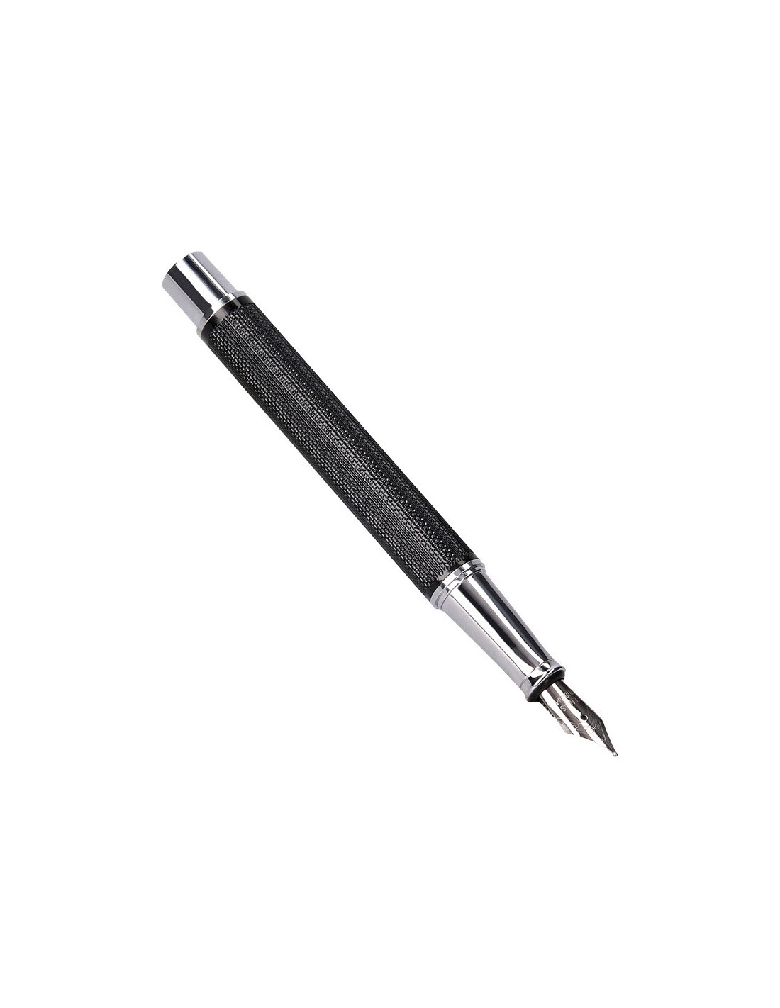La pluma de la colección Turbo es una pieza exclusiva una textura punteada en color negro y detalles metálicos plateados. Viene acompañado por un estuche de símilpiel negro con cierre de botón plateado, presentado en una caja magnética de diseño. La colección Turbo se inspira en el apasionante mundo de las carreras de motor, capturando el estilo deportivo de los coches de competición en cada detalle de escritura. La textura punteada evoca la sensación del asfalto en la pista, transmitiendo emoción y velocidad. Cada pieza está diseñada con matices deportivos y transmite una vibrante energía. El diseño ergonómico proporciona una experiencia de escritura cómoda y precisa, mientras que los detalles inspirados en las líneas de los autautomóviles aportan estilo y sofisticación. Ya sea en reuniones de negocios o momentos de creatividad, la colección Turbo te inspirará a superar tus límites y alcanzar nuevas metas. Experimenta la emoción de la velocidad eabra escrita con la colección Turbo. T