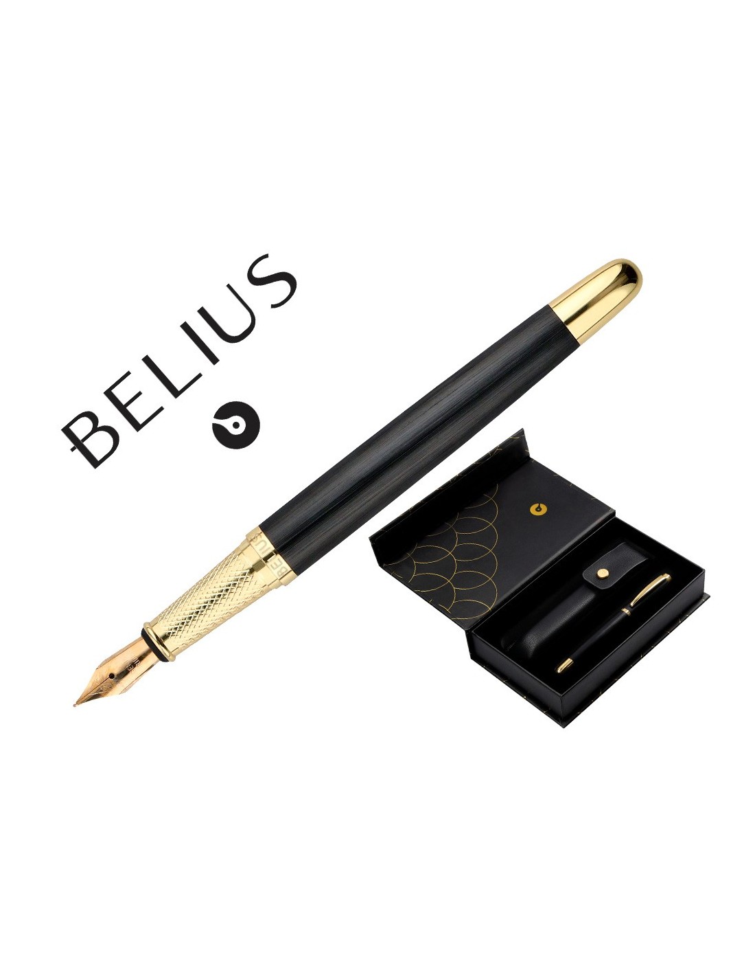 PLUMA CUERO BELIUS PASSION DOR AL.TEXT NG.Y DORADO TINTA AZ.