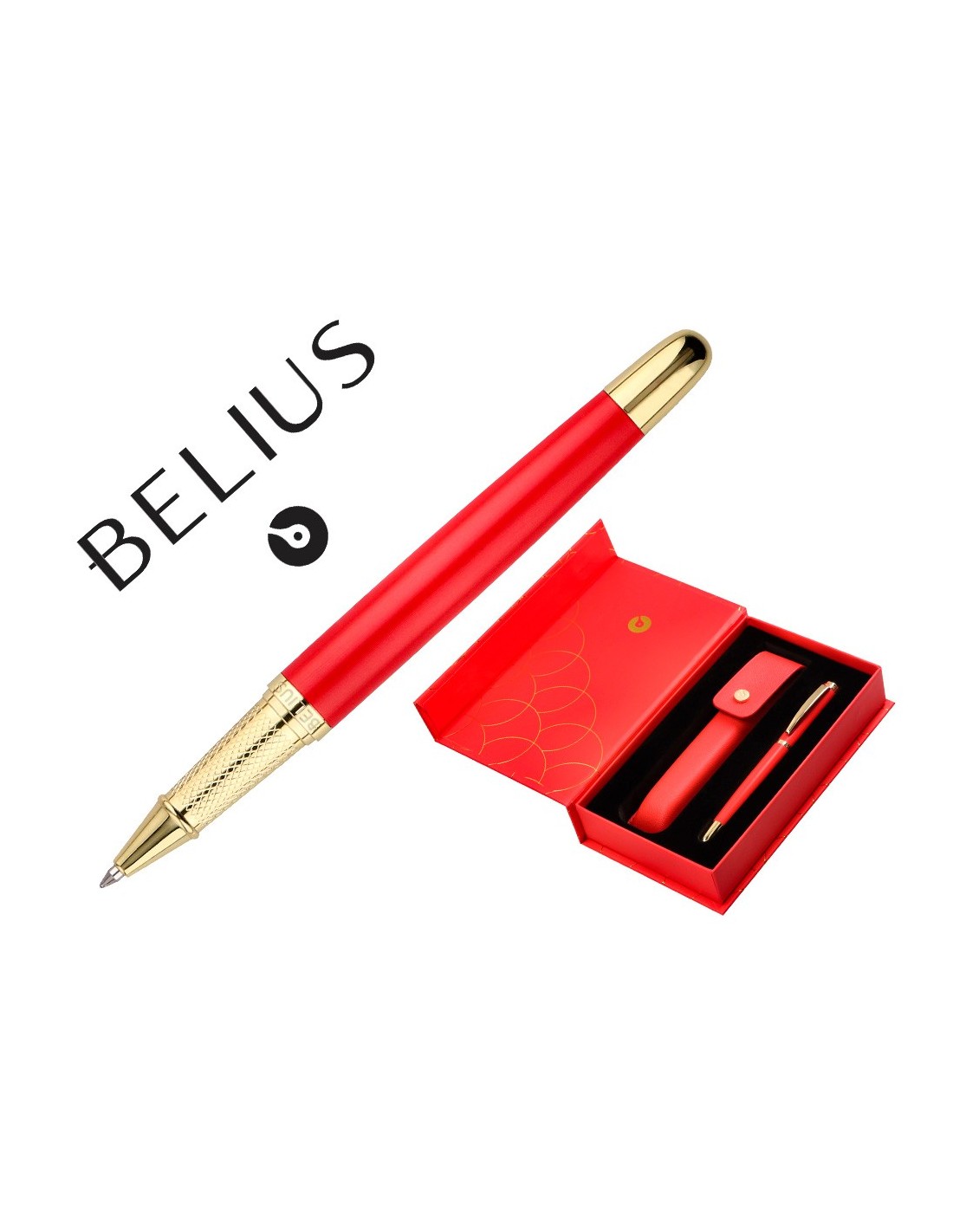 BOLIGRAFO BELIUS PASSION AL.TEXT CEPILLADA RJ. GOLD AZ. CAJA DISEÑO