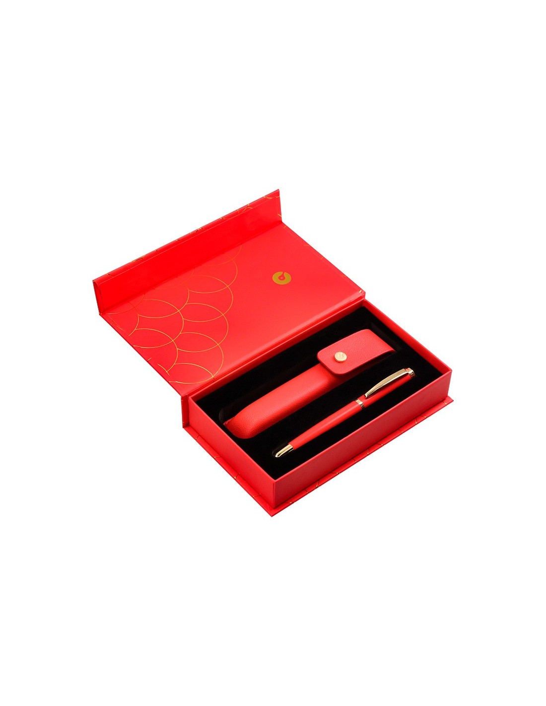 El bolígrafo Passion D'or es una pieza única que combina el color rojo pasión con una textura de aluminio cepillado y detalles metálicos en dorado. Este bolígrafo viene acompañado por un estuche de símilpiel rojo con cierre de botón dorado, que no solo permite proteger y cuidar de la pieza, sino que también añade un toque de estilo y diseño al guardarla en el bolso o en el espacio de trabajo. Presentado en una elegante caja de diseño con cierre magnético, trata de transmitir que la belleza también se encuentra en el interior, en los pequeños detalles, a través de su meticuloso cuidado en cada detalle y decorado en la solapa interior, agregando un valor adicional de glamour y distinción. El rojo pasión combinado con dorado realza sa su estética elegante y exclusiva. Se trata del regalo perfecto para sorprender a alguien especial o para disfrutarlo personalmente. Podrás escribir con estilo y elegancia, ya que las piezas Passion D'Or brindan una experescritura excepcional, añadiendo un