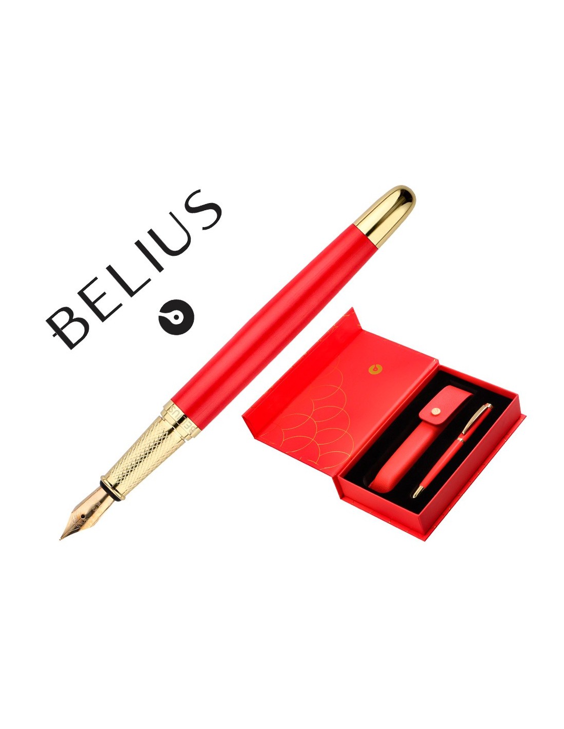 PLUMA CUERO BELIUS PASSION DOR AL.TEXT. RJ. DORADO TINTA AZ.