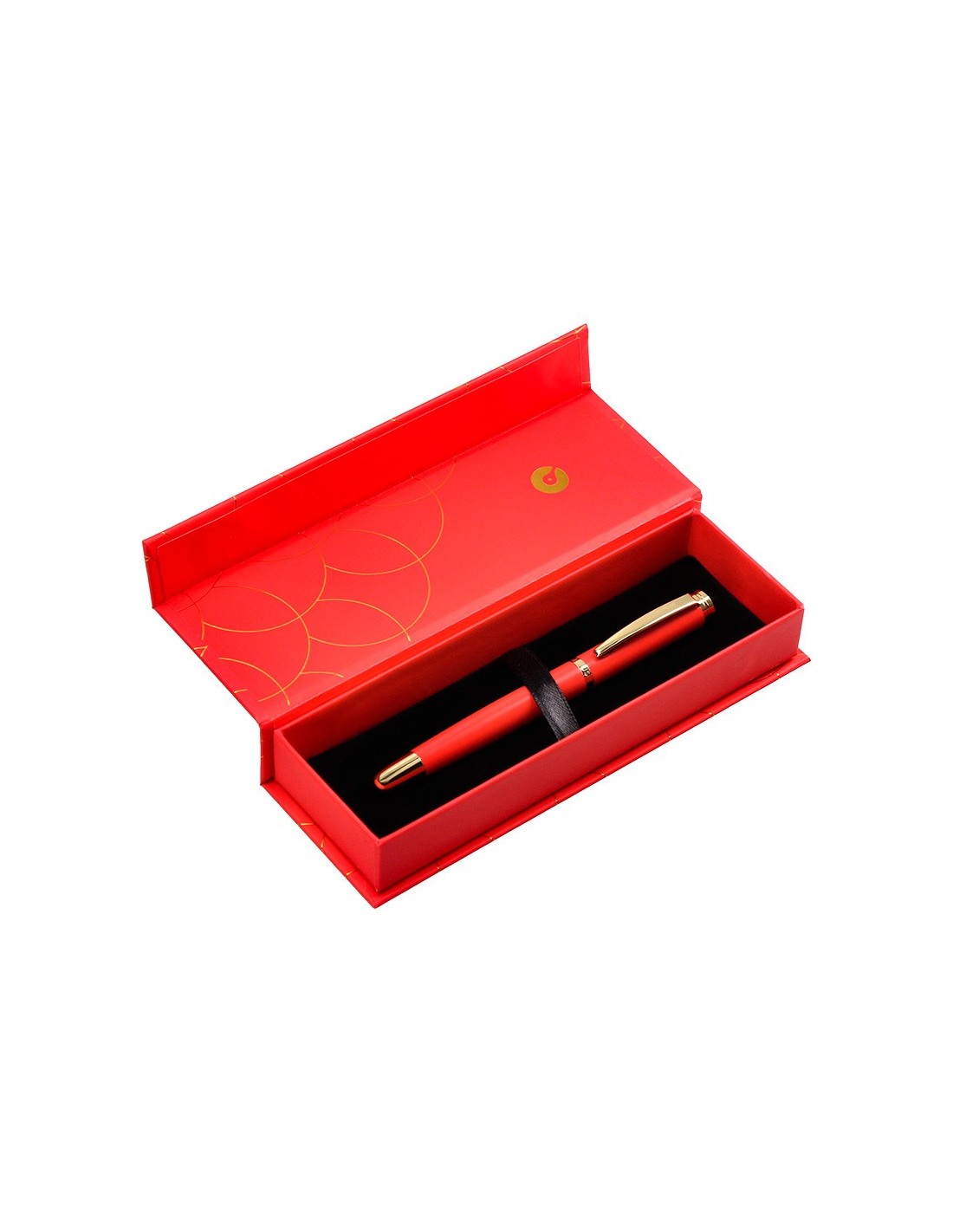 El bolígrafo Passion D'or es una pieza única que combina el color rojo pasión con una textura de aluminio cepillado y detalles metálicos en dorado. Viene presentado en una elegante caja de diseño con cierre magnético, también decorada en su interior. Podrás escribir con estilo y elegancia, ya que las piezas Passion D'Or brindan una experiencia de escritura excepcional, añadiendo un toque de glamour a cada palabra. El rojo pasión combinado con dorado realza su estética elegante y exclusiva. Cada pieza evoca una sensación de seducción y sensualidad, creando un vínculo emocional muy especial con la persona que la utiliza. Tinta color azul. Grosor tamaño 0,8 mm.