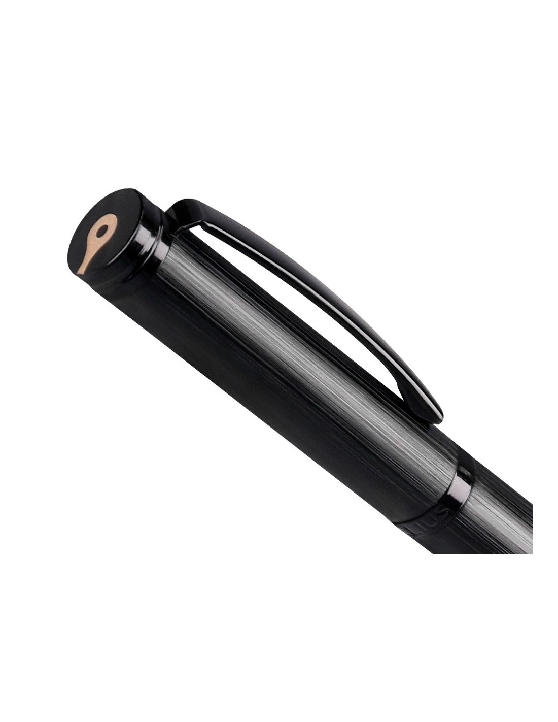 Un bolígrafo de diseño con un imponente acabado en negro sólido y una textura de aluminio cepillado, presentado en una elegante caja de regalo. Su escritura es cómoda y fluida, brindando una experiencia gratificante. Este roller ofrece un tacto ultra suave y agradable al escribir, gracias a su textura cepillada. La colección Origen 1995 es una verdadera expresión de sofisticación, elegancia y distinción, reflejando el compromiso y la dedicación que la marca ha demostrado a lo largo de sus más de 25 años de historia. Tinta color azul. Grosor tamaño 0,8 mm.