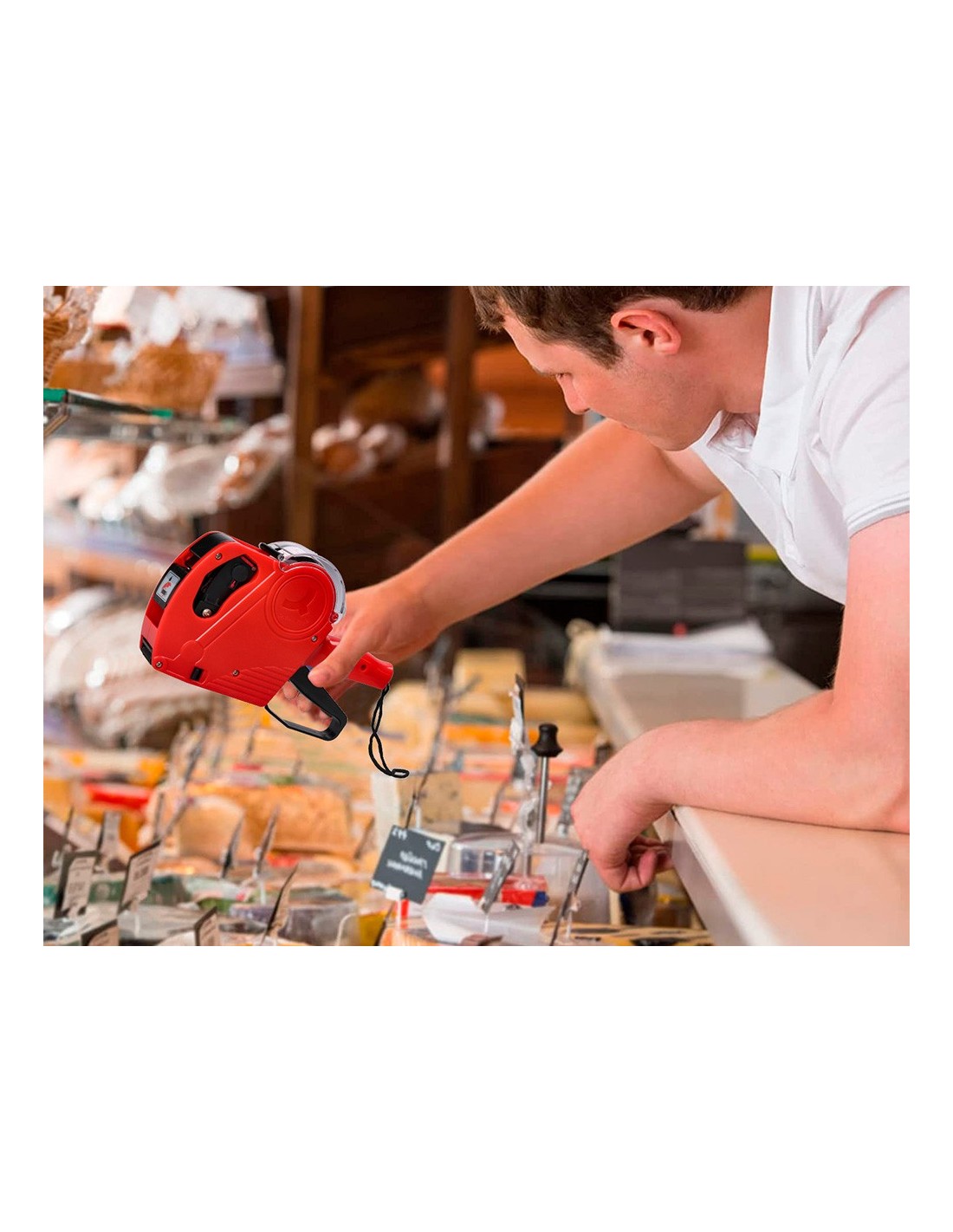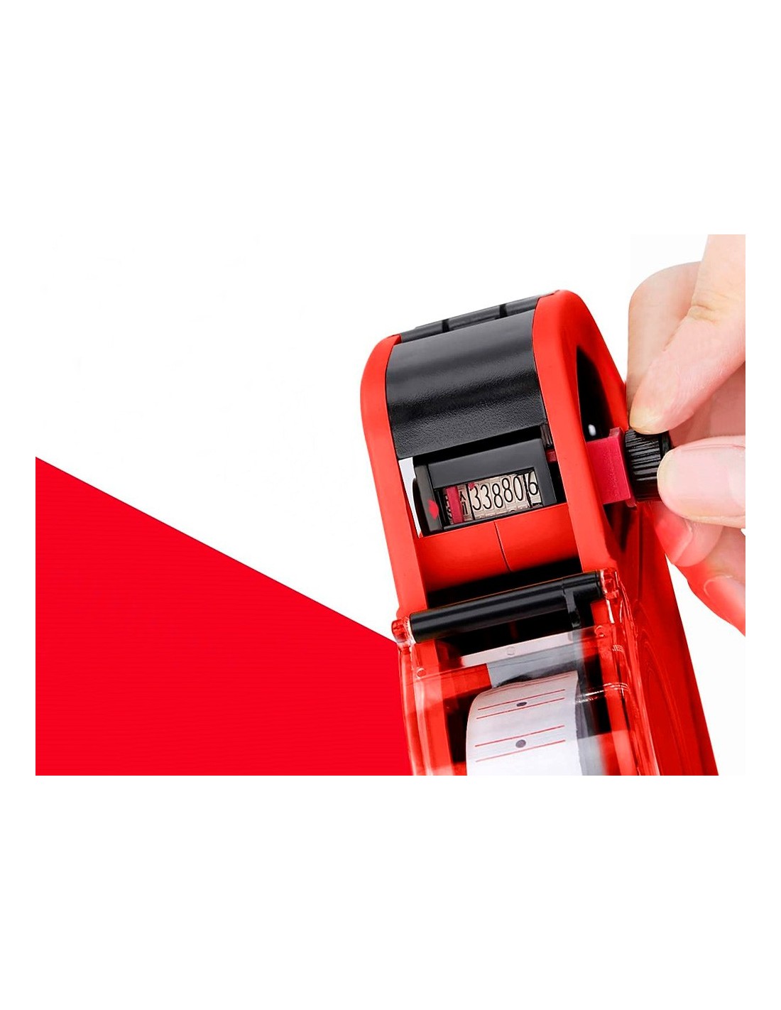 Máquina etiquetadora de una línea y 8 dígitos. Útil para marcar sus productos. Sistema de apertura en un toque. No incluye etiquetas. Medidas: 225 x 135 x 40 mm. Peso: 300 g.