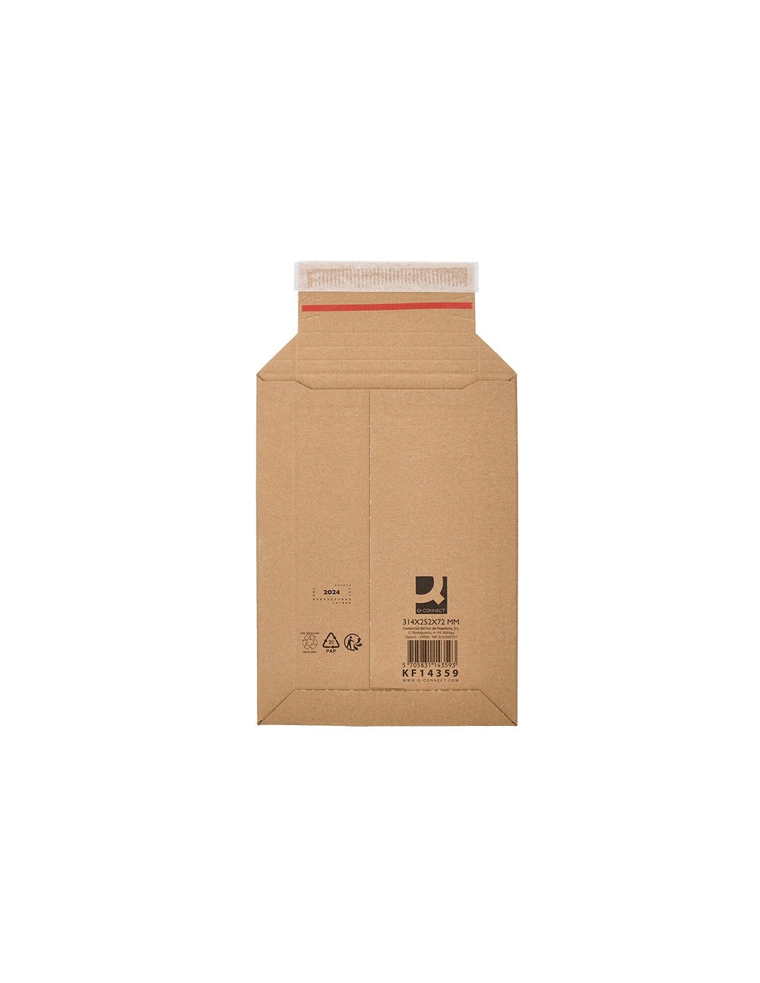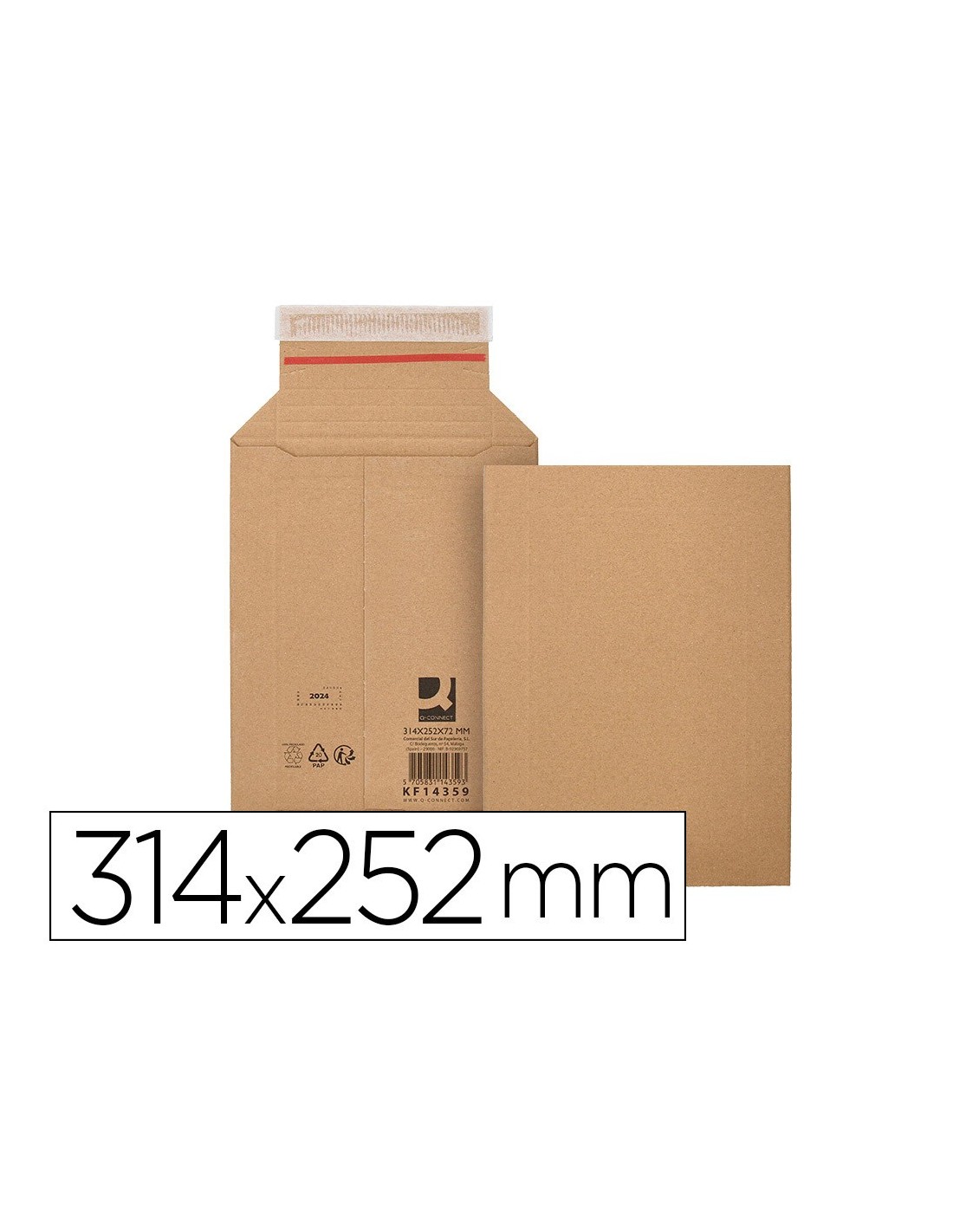 Sobre de cartón para envíos Q-Connect color kraft. Fabricados con cartón rígido 100% reciclado y reciclable. Las dimensiones exteriores son 314x252 mm y una altura ajustable de hasta 72 mm. Es perfecto para el envío de d ocumentos planos DIN A4 y folio. También para el envío de multitud de productos como libros, folletos, componentes electrónicos, joyas, fotografías... Los sobres tienen un cierre autoadhesivo con tiras despegables que garantizan un sellado seguro y rápido, mientras que las esquinas y bordes reforzados ofrecen protección adicional, evitando que el contenido se doble. La solapa incluye 4 pliegues para garantizar que el sobre quede completamente ajustado al producto. Con sistema abrefácil que permite una apertura sesencilla del sobre, garantizando al mismo tiempo un envío totalmente segu ro, confidencial e inviolable. Ideal para envíos en industrias, oficinas y comercios tipo e-commerce.