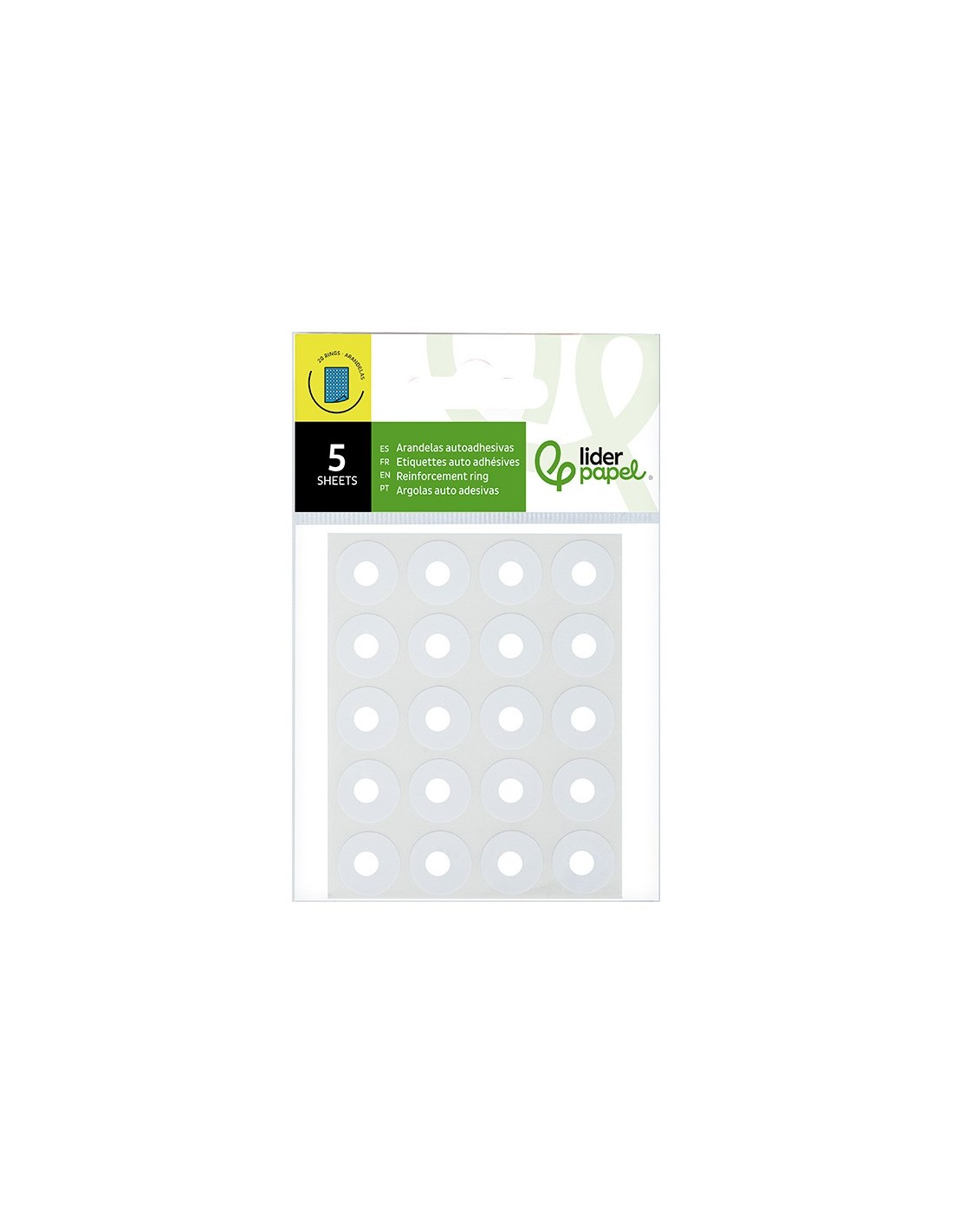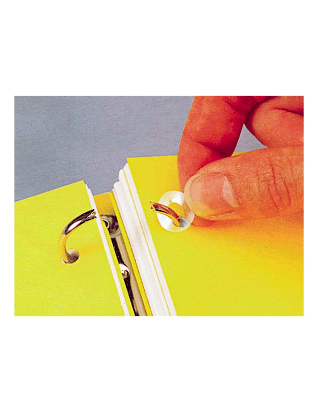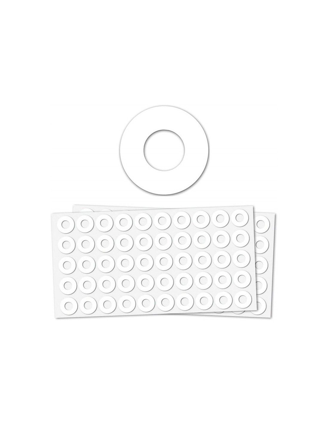 Muy útiles para la conservación de hojas taladradas. Color blanco. Sobre de 5 hojas. El sobre con 100 arandelas.