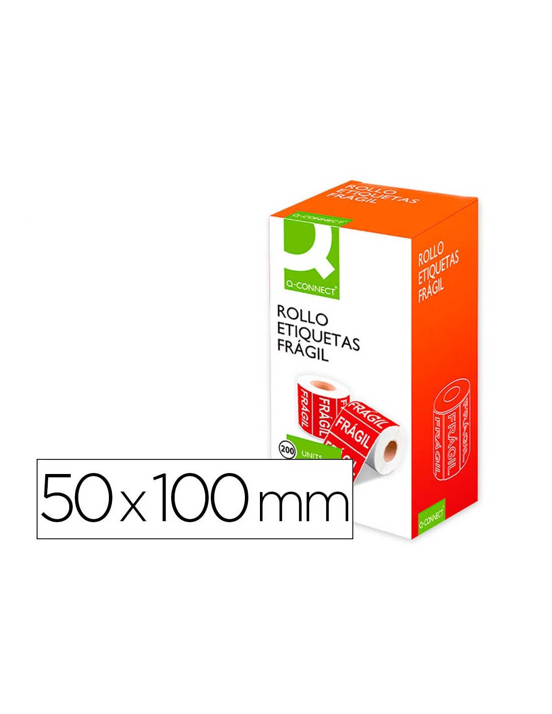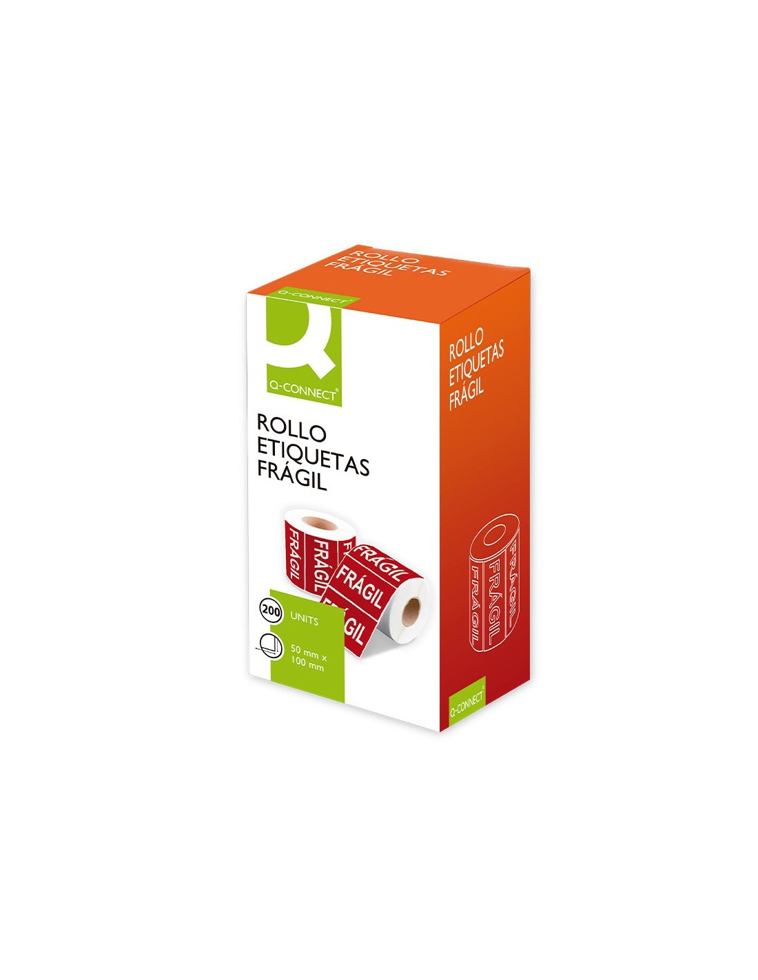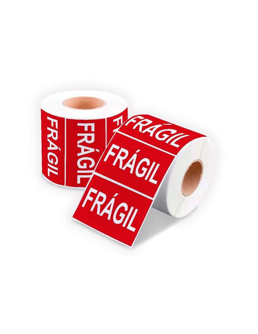 Rollo de etiquetas adhesivas de color rojo impresas en blanco con la palabra \"FRÁGIL\". Ideales para identificar mercancía frágil en los envíos. Rollo de 200 etiquetas. Medidas de la etiqueta: 50 x 100 mm.