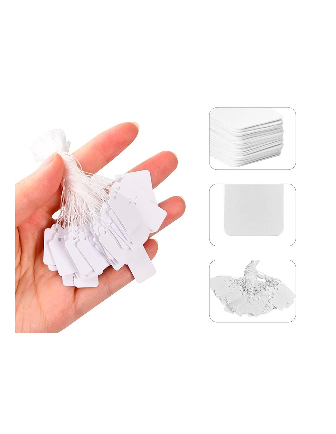 Las etiquetas colgantes con cuerda son etiquetas versátiles y personalizables utilizadas para diversos propósitos como branding, fijación de preciose identificación de productos. Están fabricadas con cartulina y cuentan c on una cuerda para fijar al producto. Ofrecen una solución de etiquetado flexible y duradera para una amplia gama de aplicaciones. Medidas: 21x35 mm. Caja de 500 unidades.