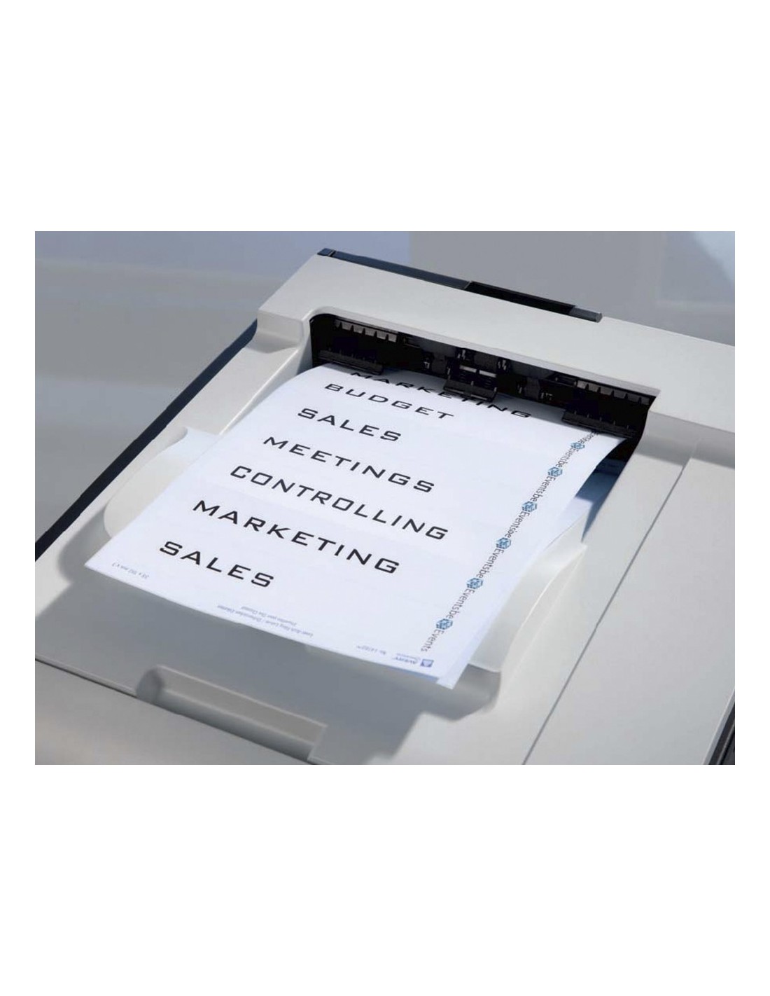 Etiquetas blancas de papel con adhesivo permanente y cubriente. Ideales para etiquetar cajas de archivo. Nueva tecnología ultragrip, agarre seguro sin atascamientos para impresiones perfectas. Gracias a la tecnología blockout, al especial material cubriente permite ocultar la etiqueta anterior. Color blanco Para lomo ancho de 6 cm. Caja de 20 hojas. Se puede utilizarel software crea e imprime gratuito de Avery para realizar el diseño de l as etiquetas con pocos clics.
