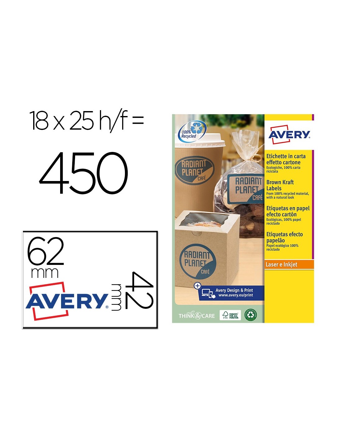 ETIQUETA ADH. AVERY KRAFT EFECTO CARTON RECTANGULAR 62X42MM REMOV.