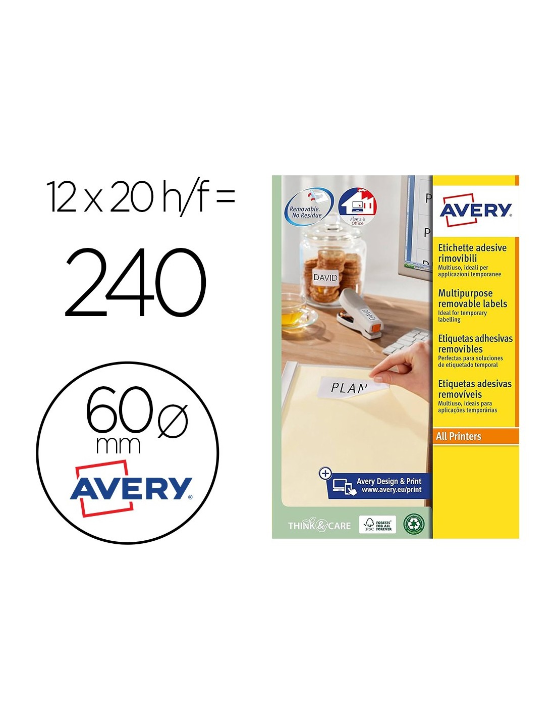 Etiquetas adhesivas blancas removibles. Perfecta para un etiquetado temporal. Ideales para etiquetar productos y sobre El adhesivo no deja residuo de pegamento sobre la superficie. Ideales sobre productos y precios. Compatibles con impresoras ink-jet, láser y fotocopiadoras. Hechas de material proveniente de bosque certificado FSC. Caja de 20 hojas. Se puede utilizarel software crea e imprime gratuito de Avery para realizar el diseño de l as etiquetas con pocos clics.