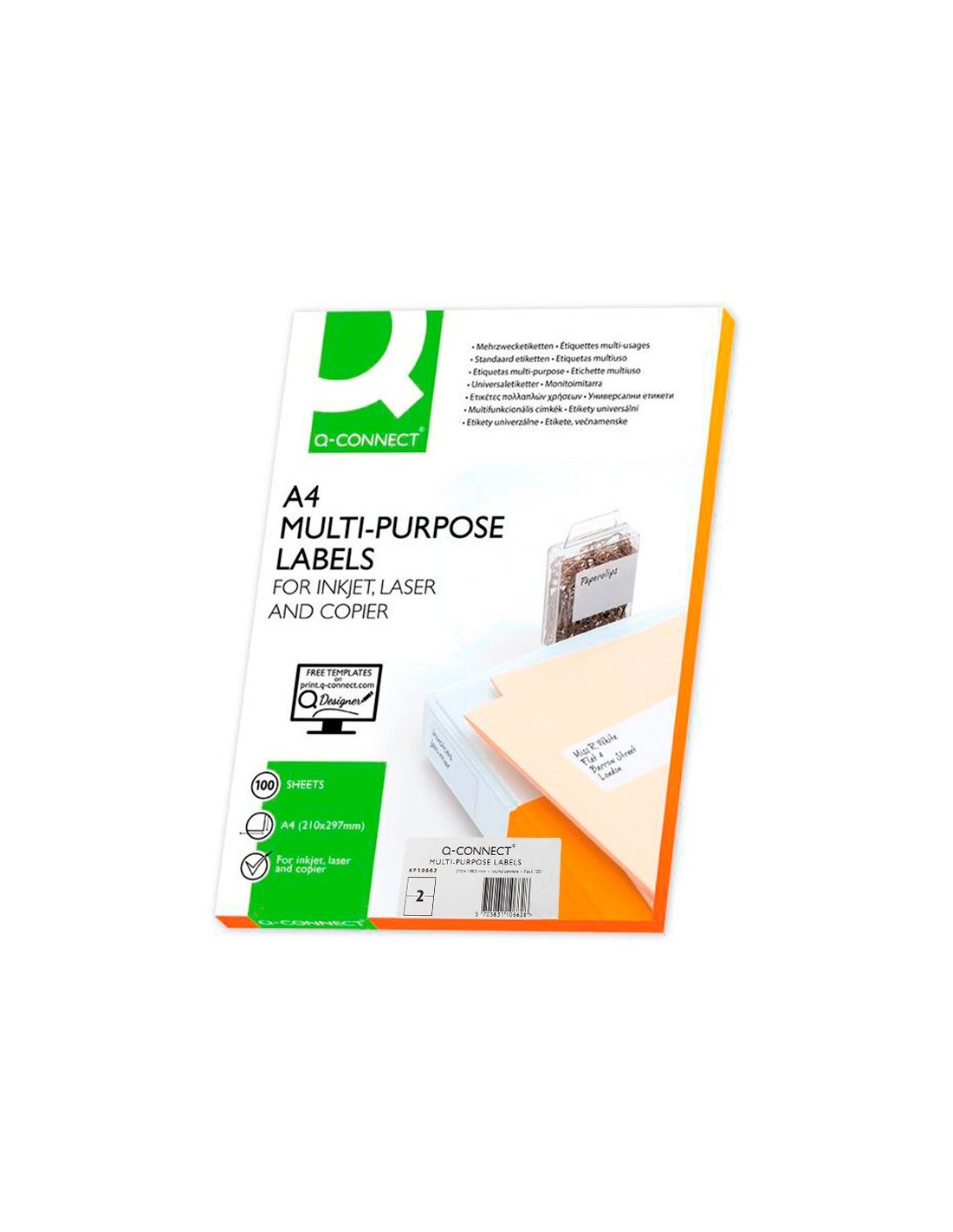 Etiquetas blancas autoadhesivas adecuadas para impresoras ink-jet, láser y fotocopiadoras. Cada caja, según tamaño, incluye 25 o 100 hojas DIN A4 en las que se presentan las etiquetas.