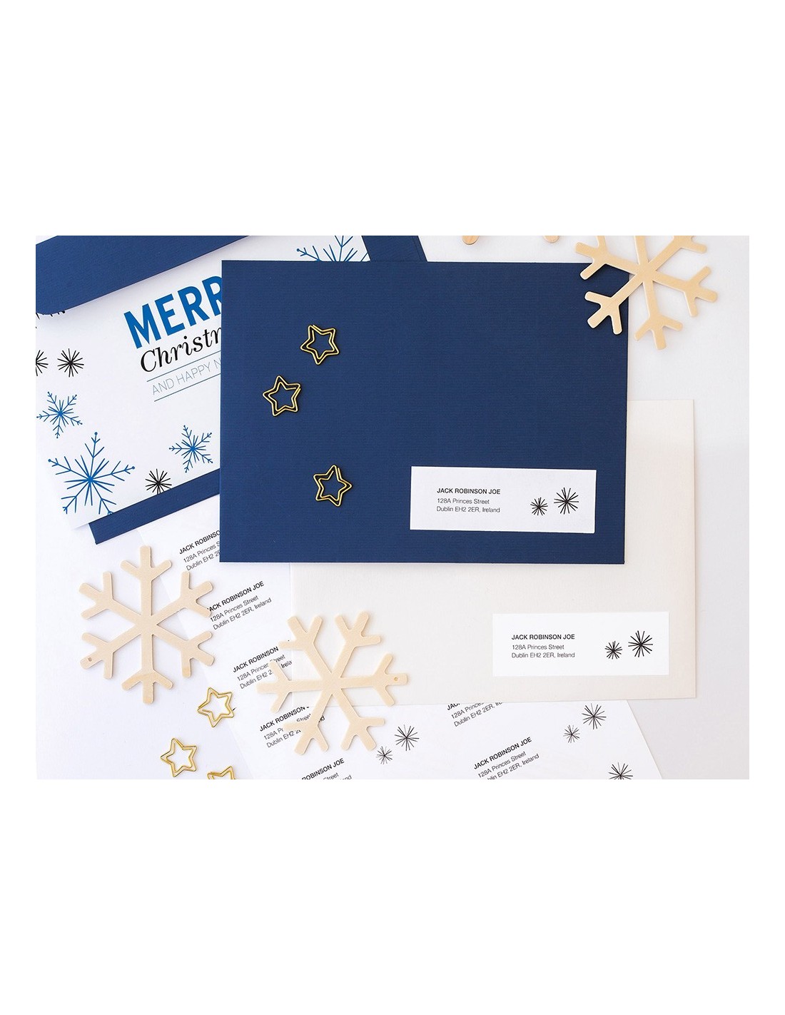 Etiquetas blancas autoadhesivas adecuadas para impresoras ink-jet, láser y fotocopiadoras. Cada caja, según tamaño, incluye 25 o 100 hojas DIN A4 en las que se presentan las etiquetas.